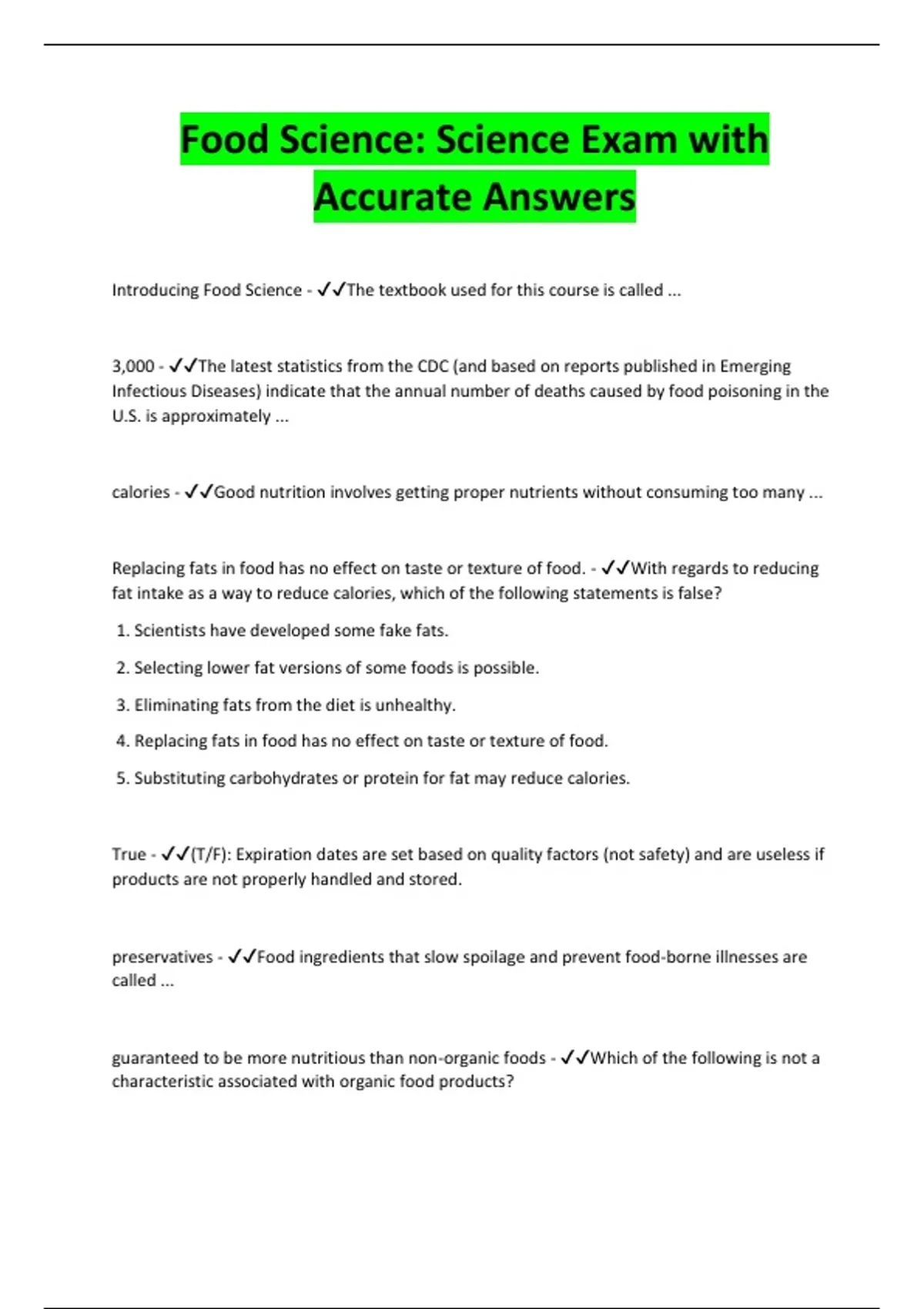 Introducing Food Science - ✔✔The textbook used for this course is called ...