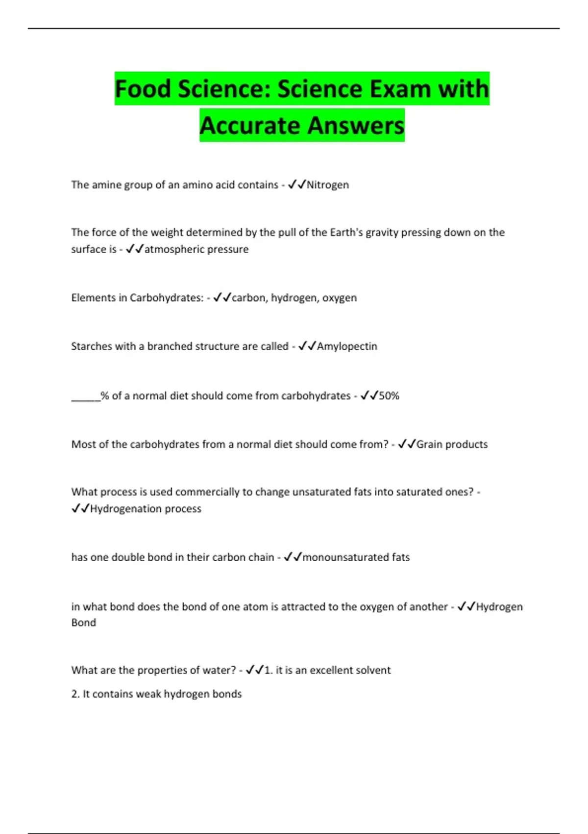 Food Science: Science Exam with