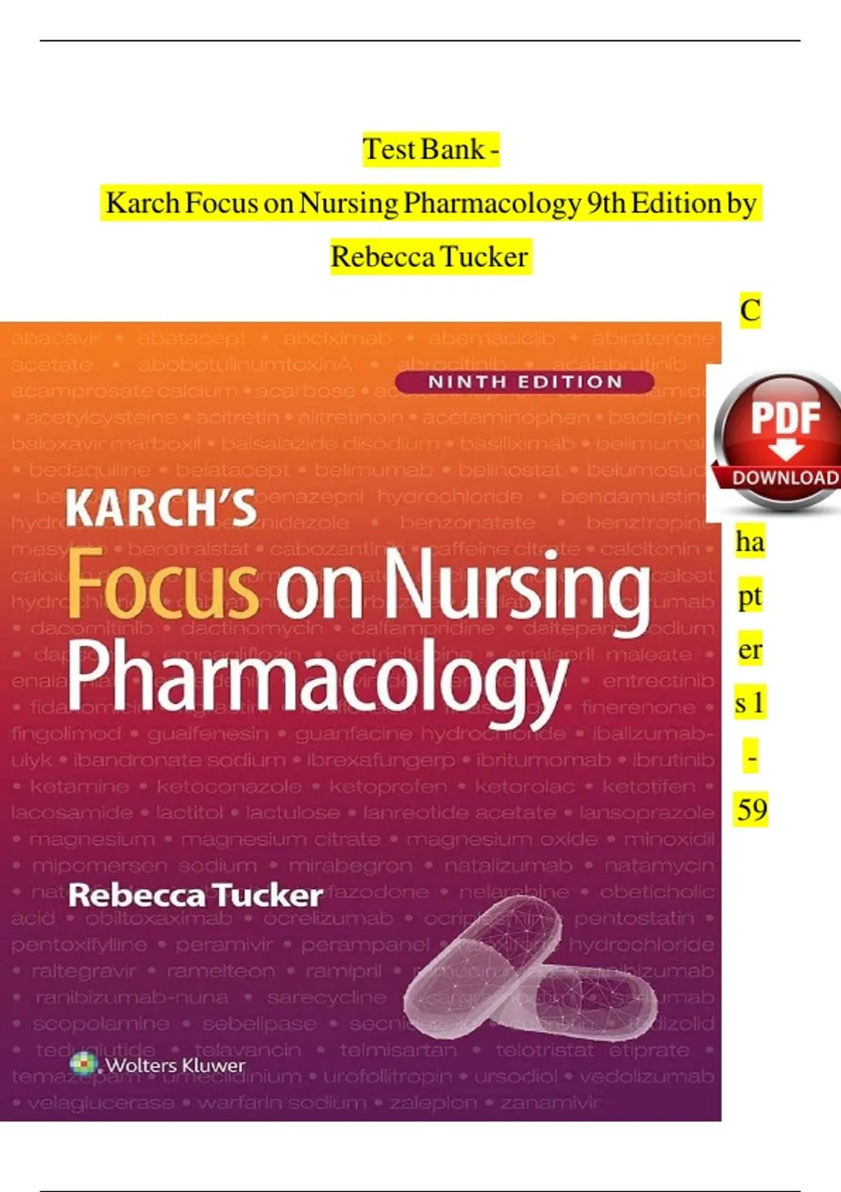 Test Bank Karch Focus on Nursing Pharmacology 9th Edition by Rebecca Tucker all chapters 1 - 39