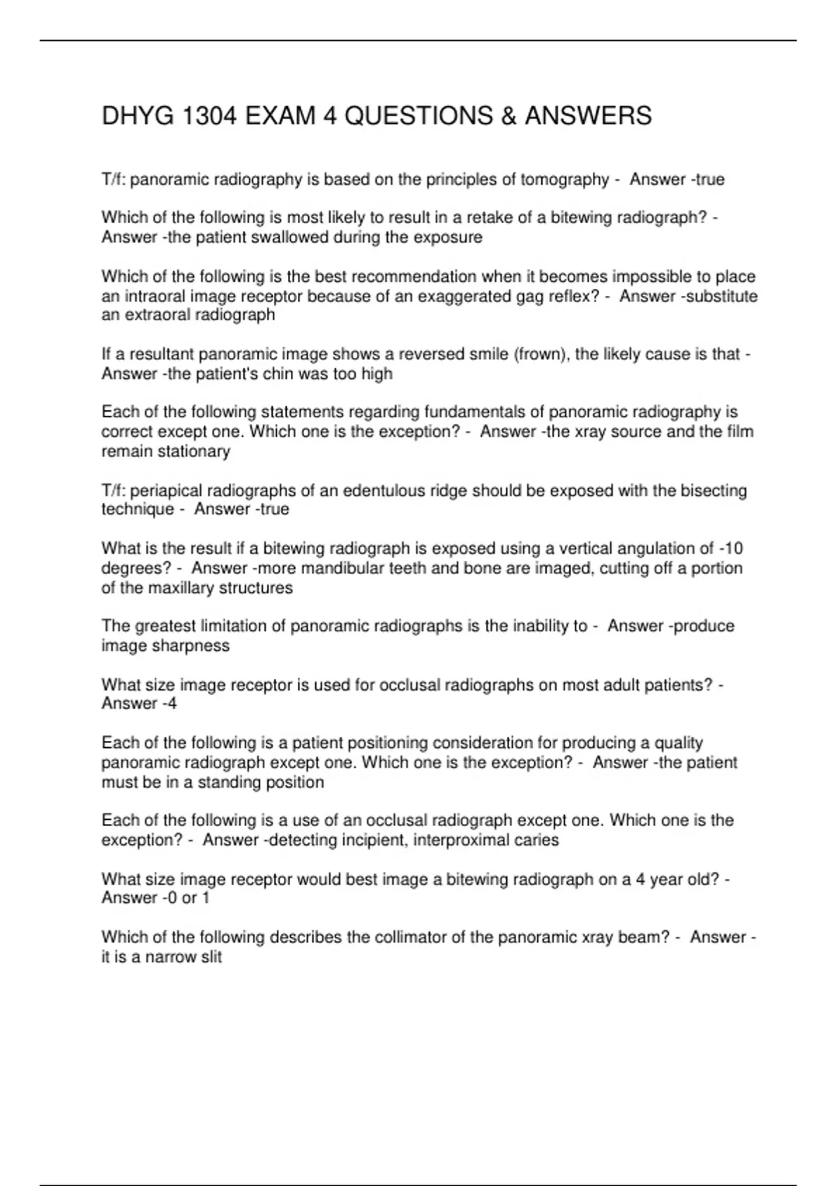 DHYG 1304 EXAM 4 QUESTIONS & ANSWERS