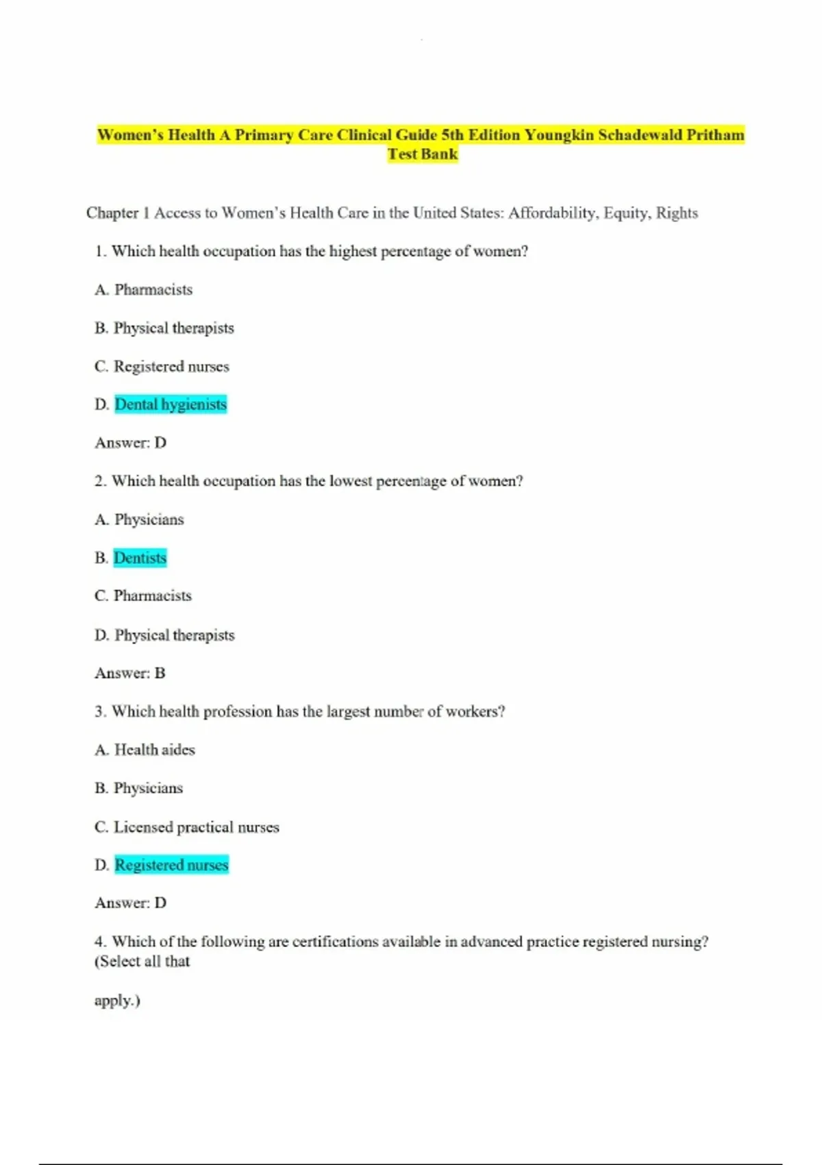 Test Bank for Womens Health A Primary Care Clinical Guide 5th Edition Youngkin Schadewald Pritham