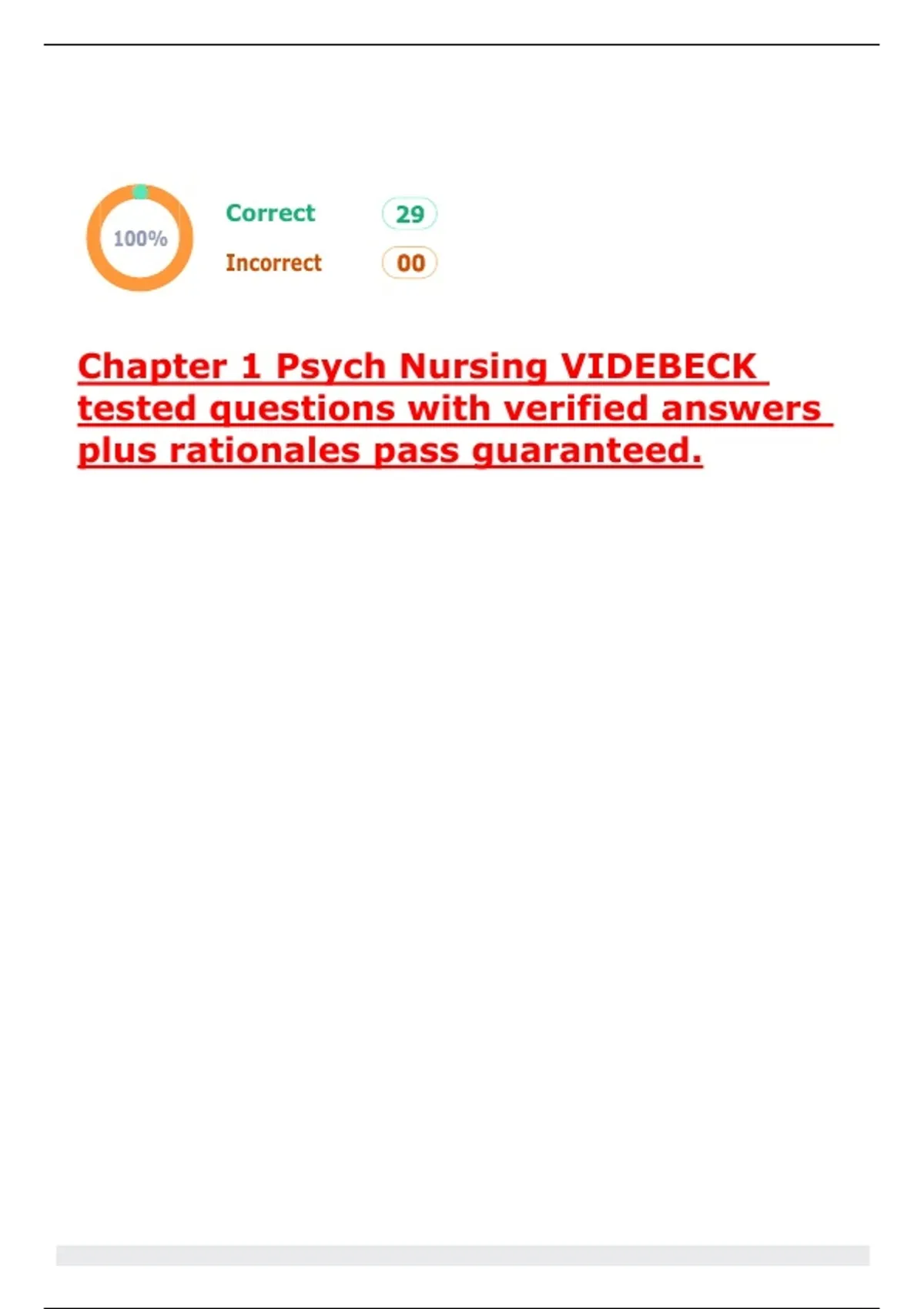 Chapter 1 Psych Nursing VIDEBECK tested questions with verified answers plus