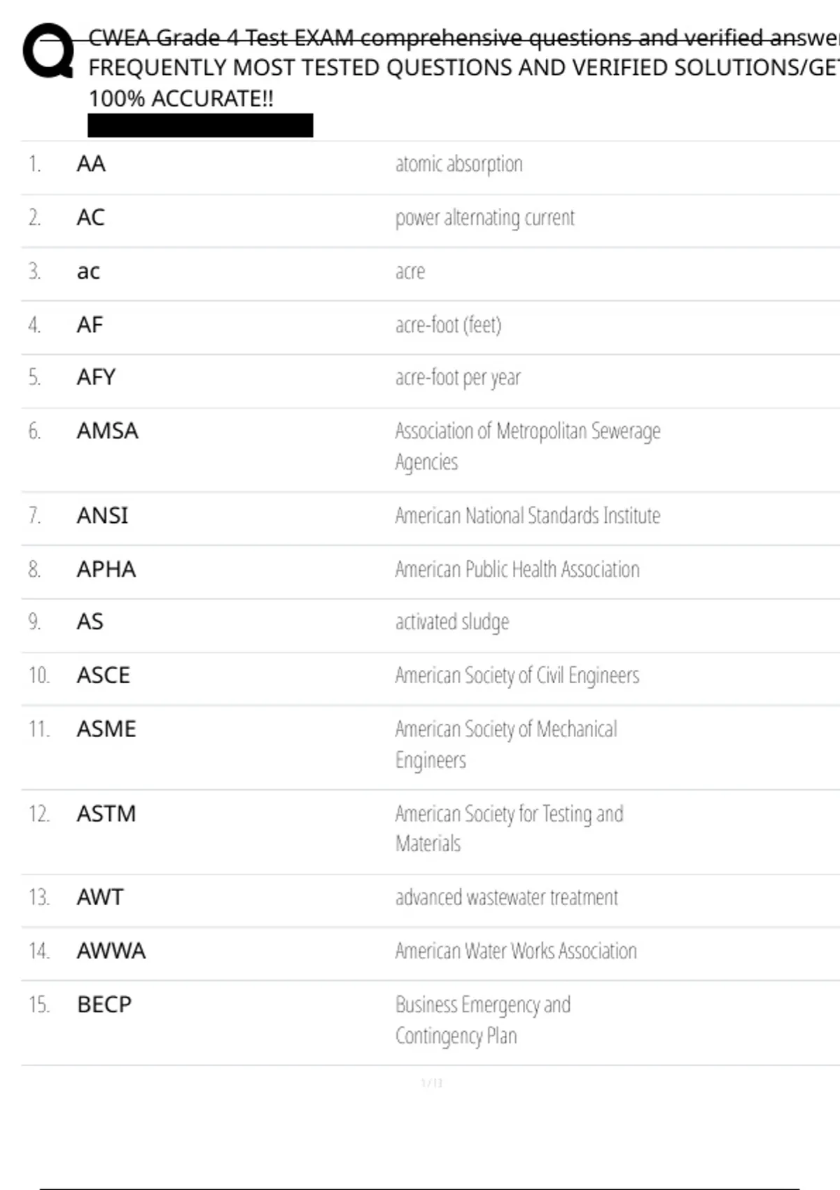 , CWEA Grade 4 Test EXAM comprehensive questions and verified answer
