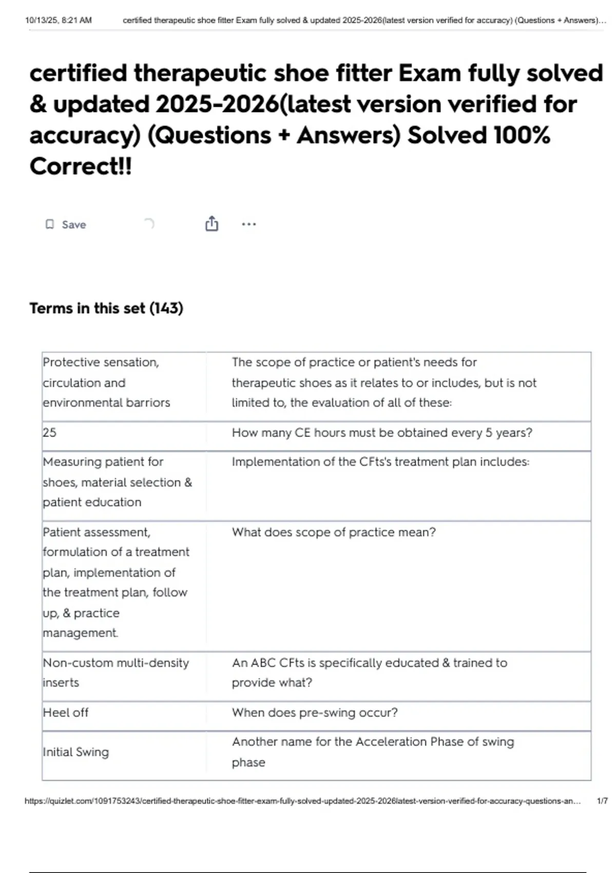 , 10/13/25, 8:21 AM certified therapeutic shoe fitter Exam fully solved & updated 2025-2026(latest version verified for accuracy) (Questions + Answers)…