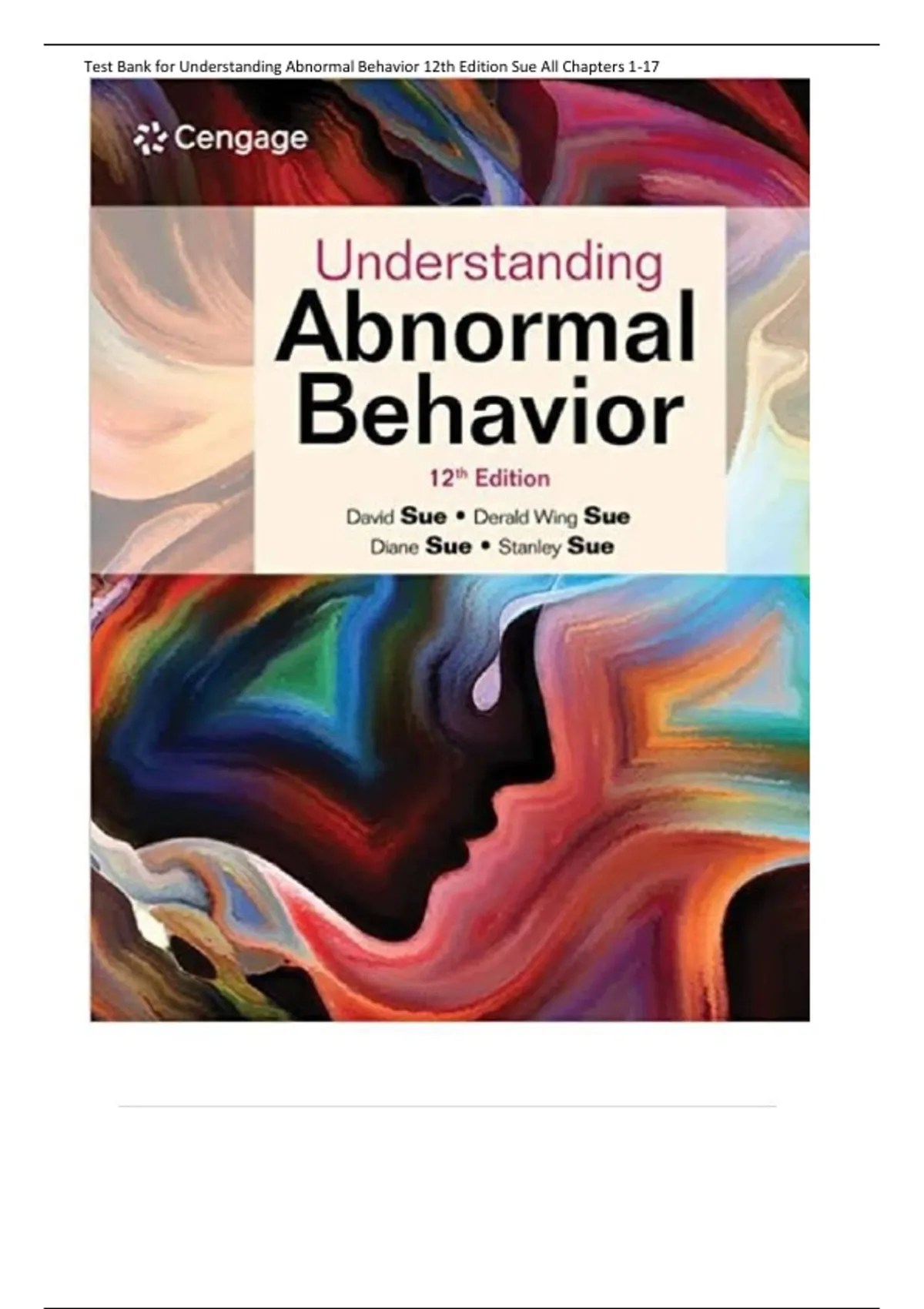 , Test Bank for Understanding Abnormal Behavior 12th Edition Sue All Chapters 1-17