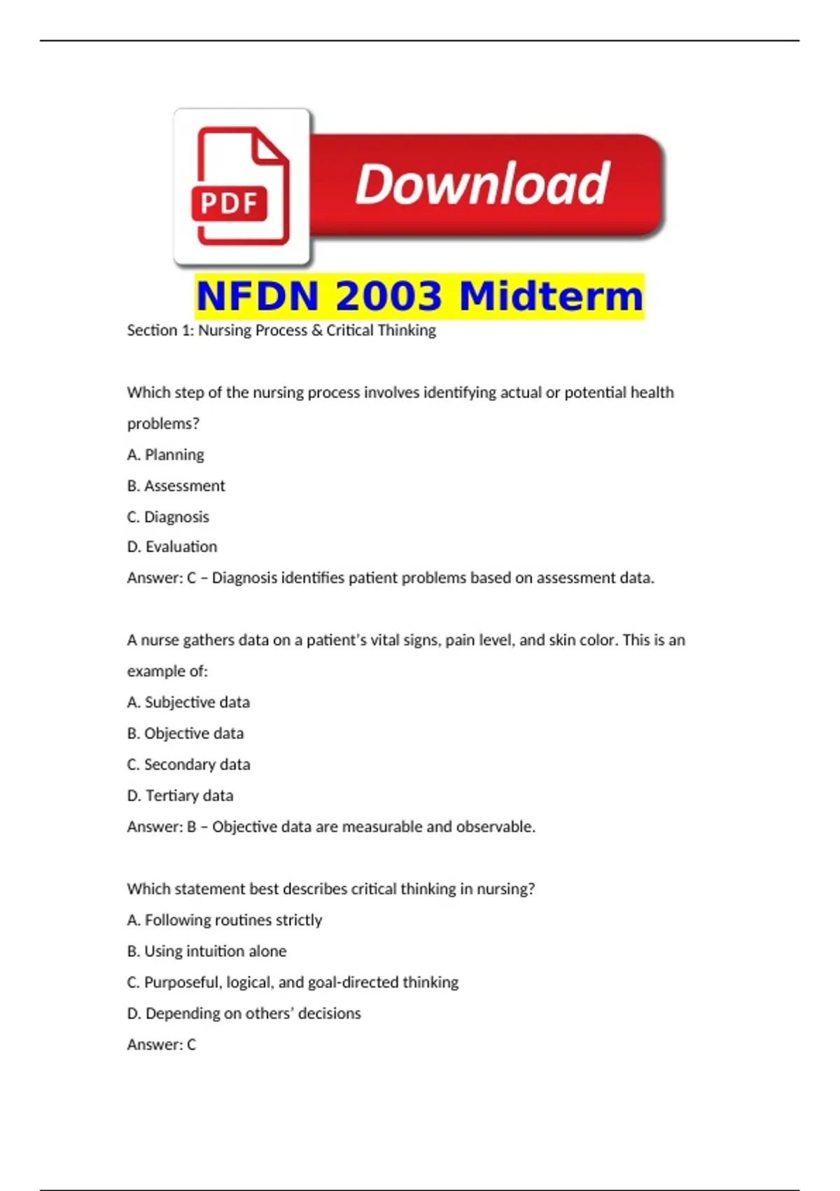 Section 1: Nursing Process & Critical Thinking