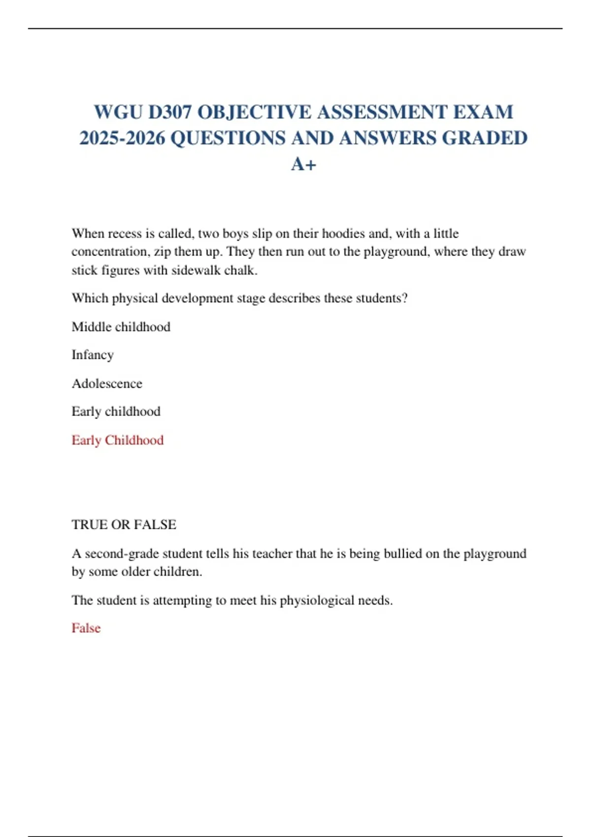 WGU D307 OBJECTIVE ASSESSMENT EXAM QUESTIONS AND ANSWERS GRADED A+