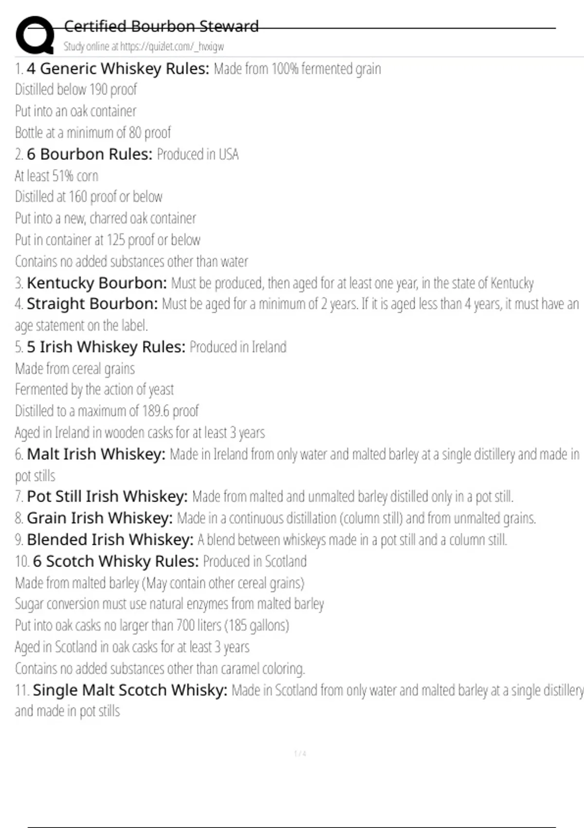 1. 4 Generic Whiskey Rules: Made from 100% fermented grain