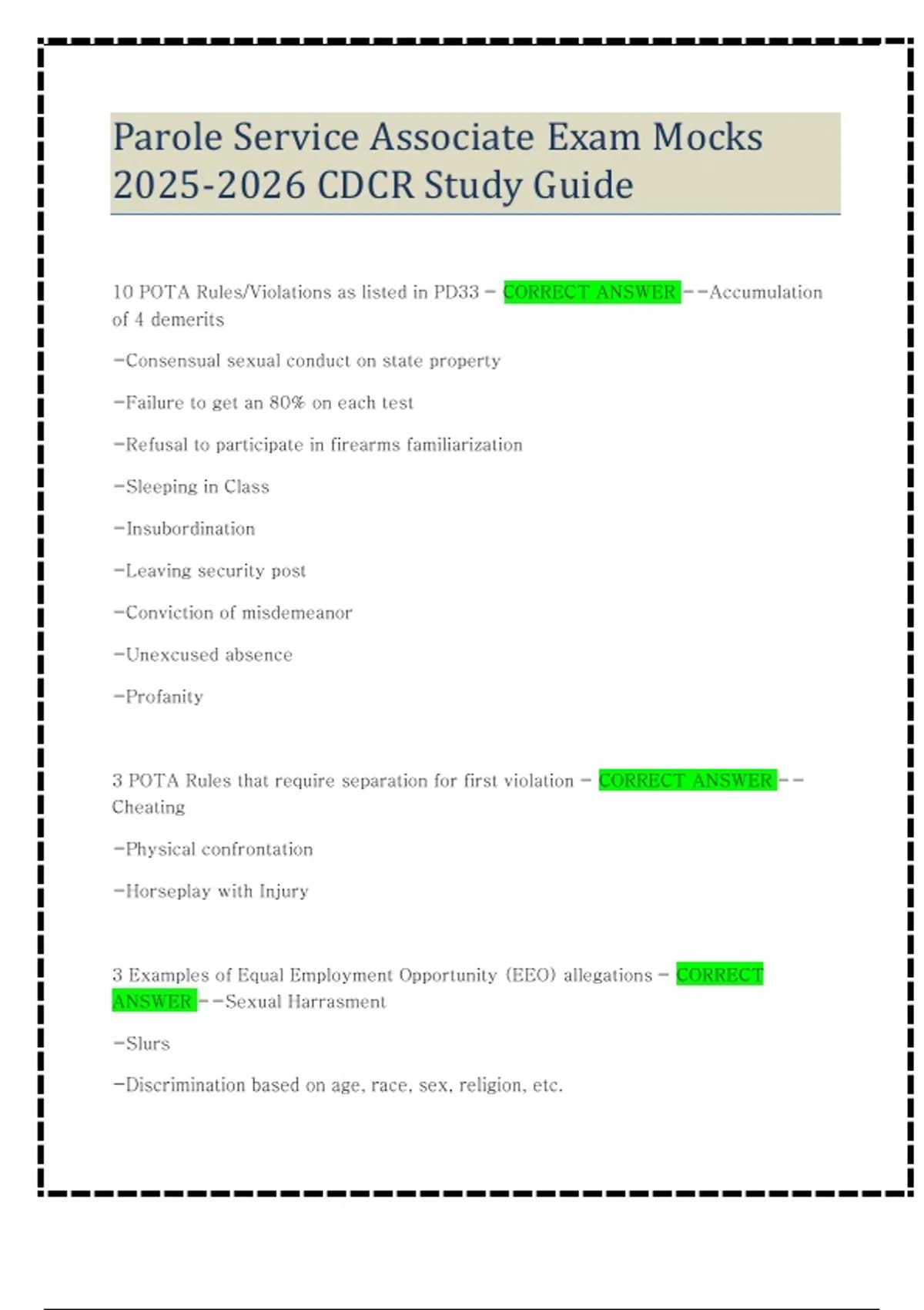 Parole Service Associate Exam Mocks CDCR Study Guide