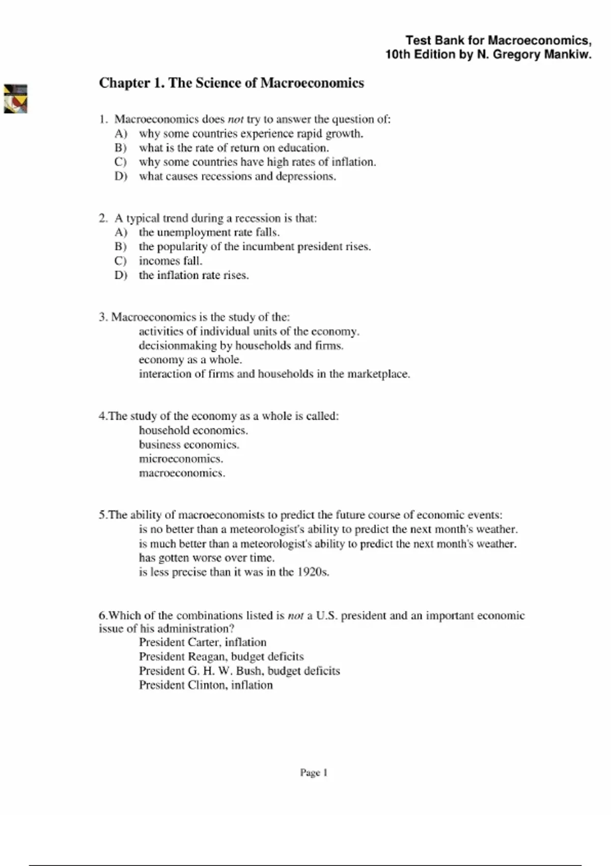 Test Bank for Macroeconomics, 10th Edition by N. Gregory Mankiw.||All chapters covered 1-23||Complete study guide.