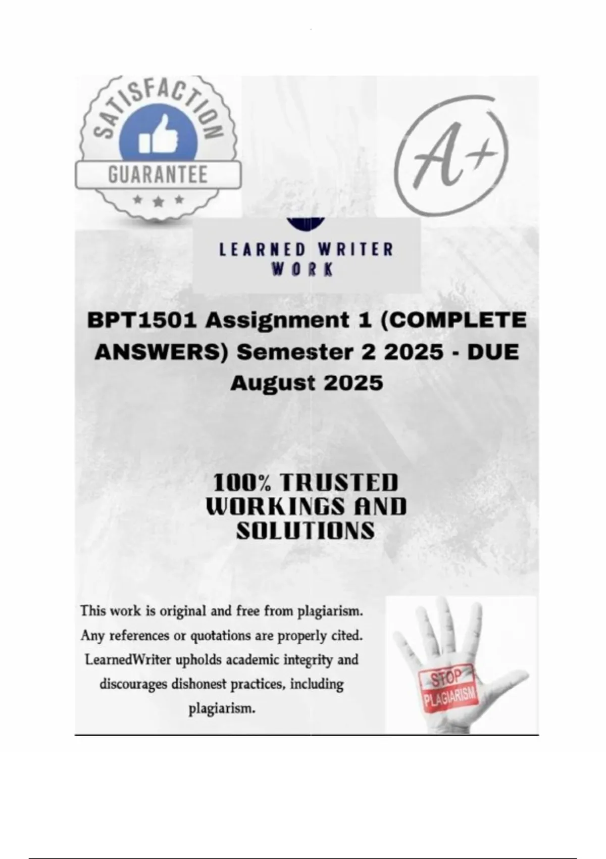 Bpt1501 Assignment 1 Questions with Complete Answers.