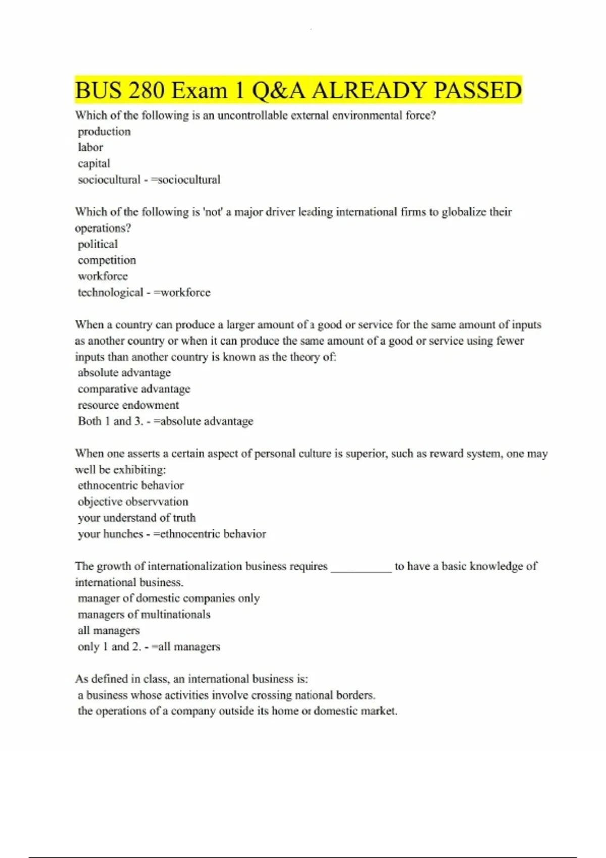 bus 280 exam 1 questions and answers 10 already pa