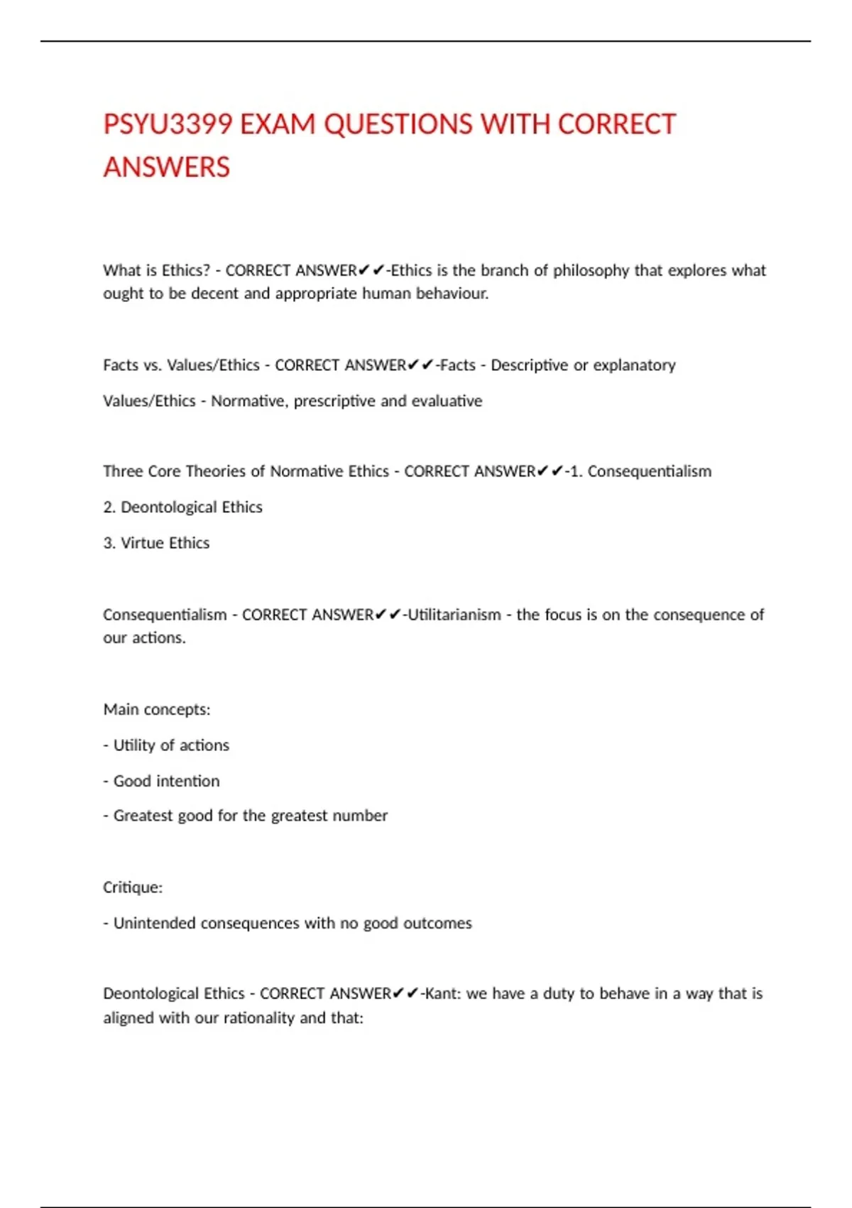 PSYU3399 EXAM QUESTIONS WITH CORRECT