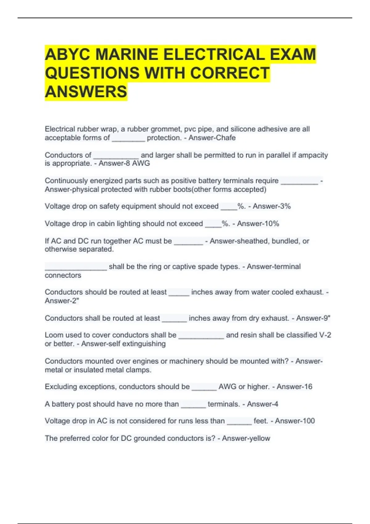 ABYC MARINE ELECTRICAL EXAM