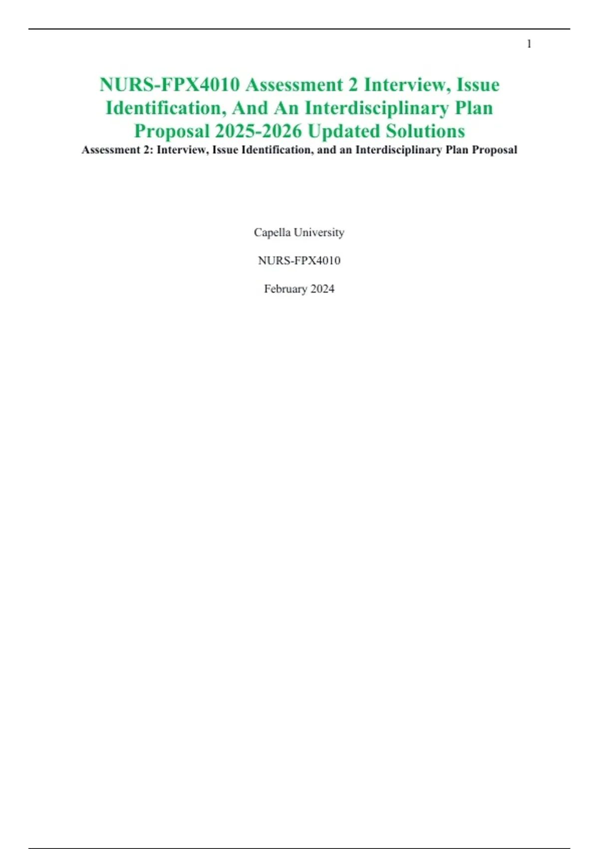NURS-FPX4010 Assessment 2 Interview, Issue Identification, And An Interdisciplinary Plan Proposal Updated Solutions