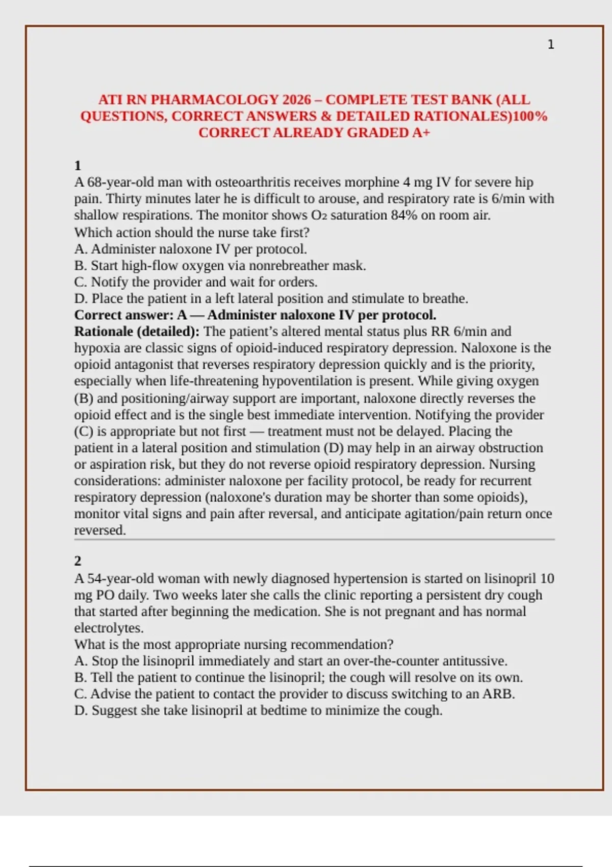 ATI RN PHARMACOLOGY 2026 – COMPLETE TEST BANK (ALL