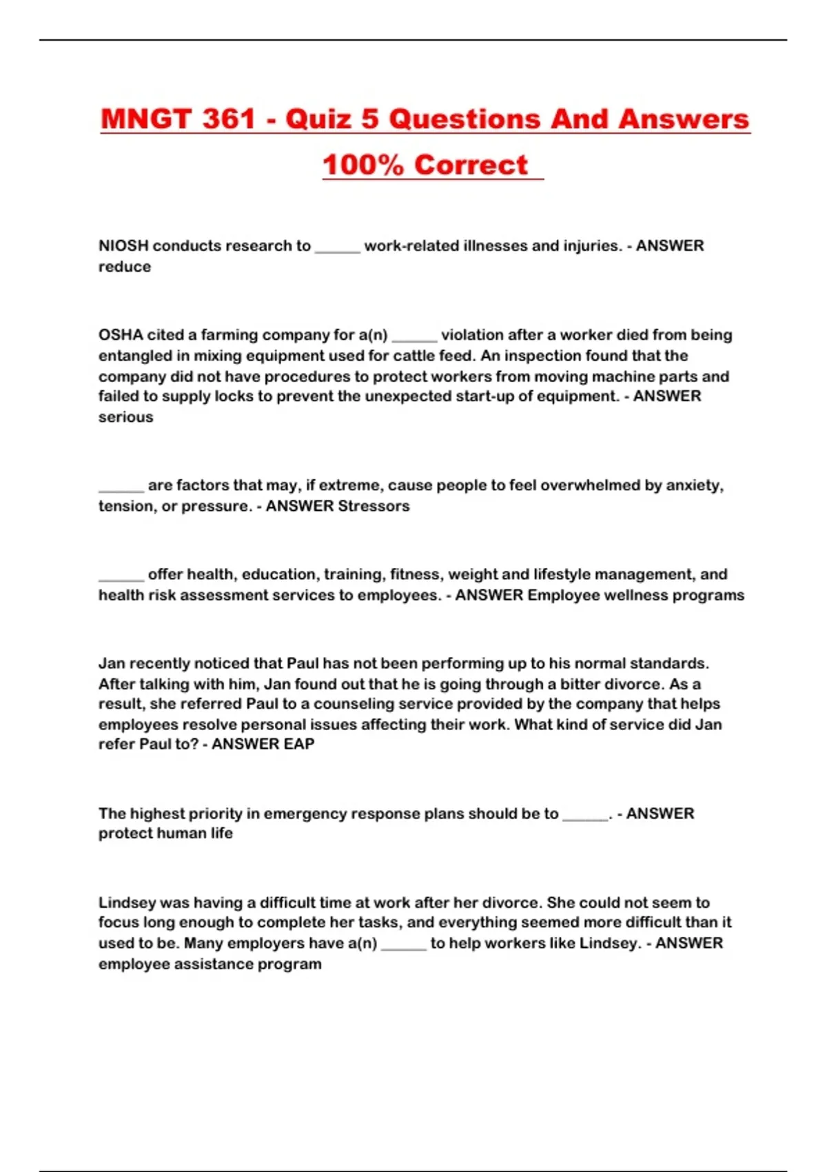 MNGT 361 - Quiz 5 Questions And Answers 100% Correct ...