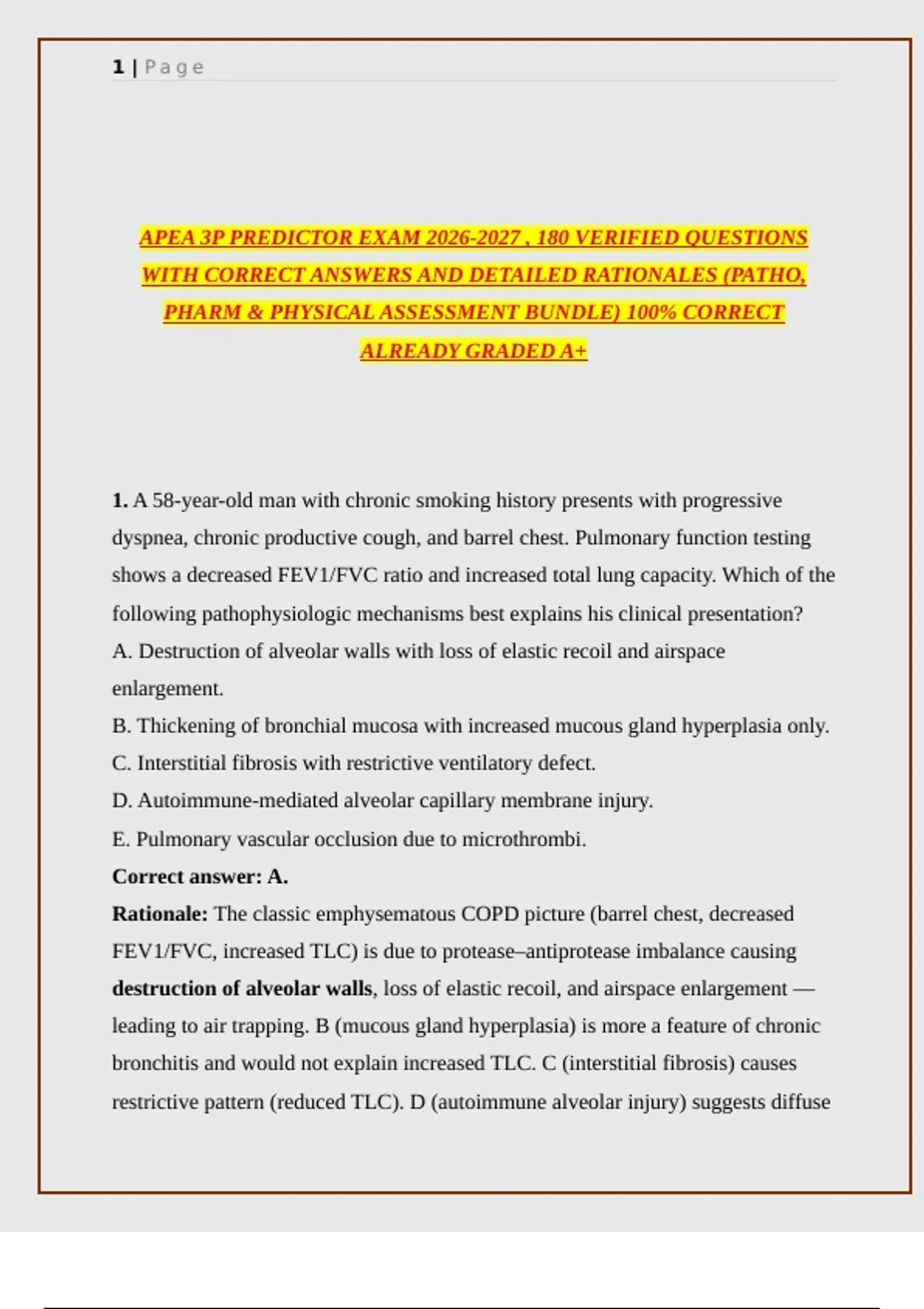 APEA 3P PREDICTOR EXAM 2026-2027 , 180 VERIFIED QUESTIONS