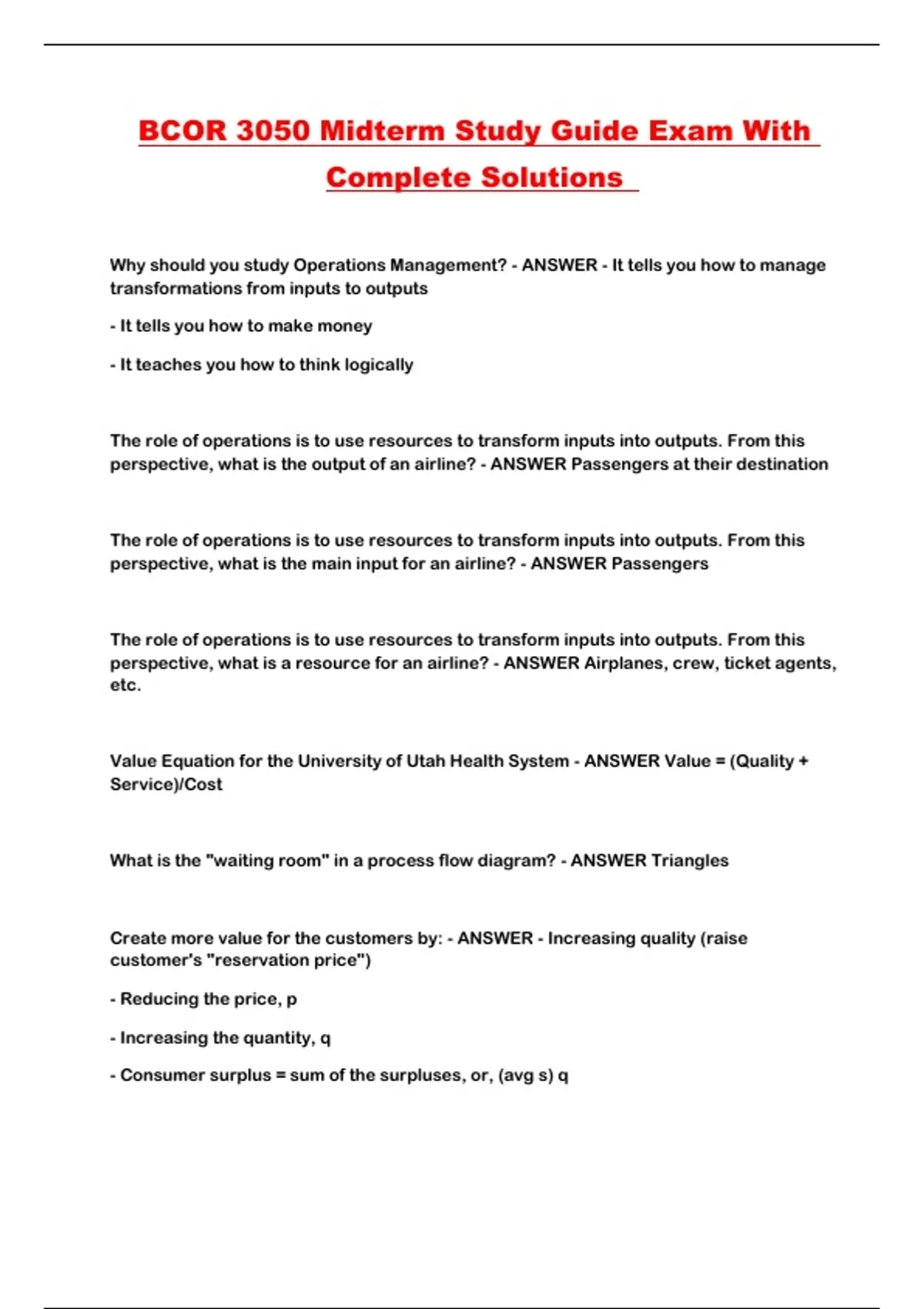 BCOR 3050 Midterm Study Guide Exam With