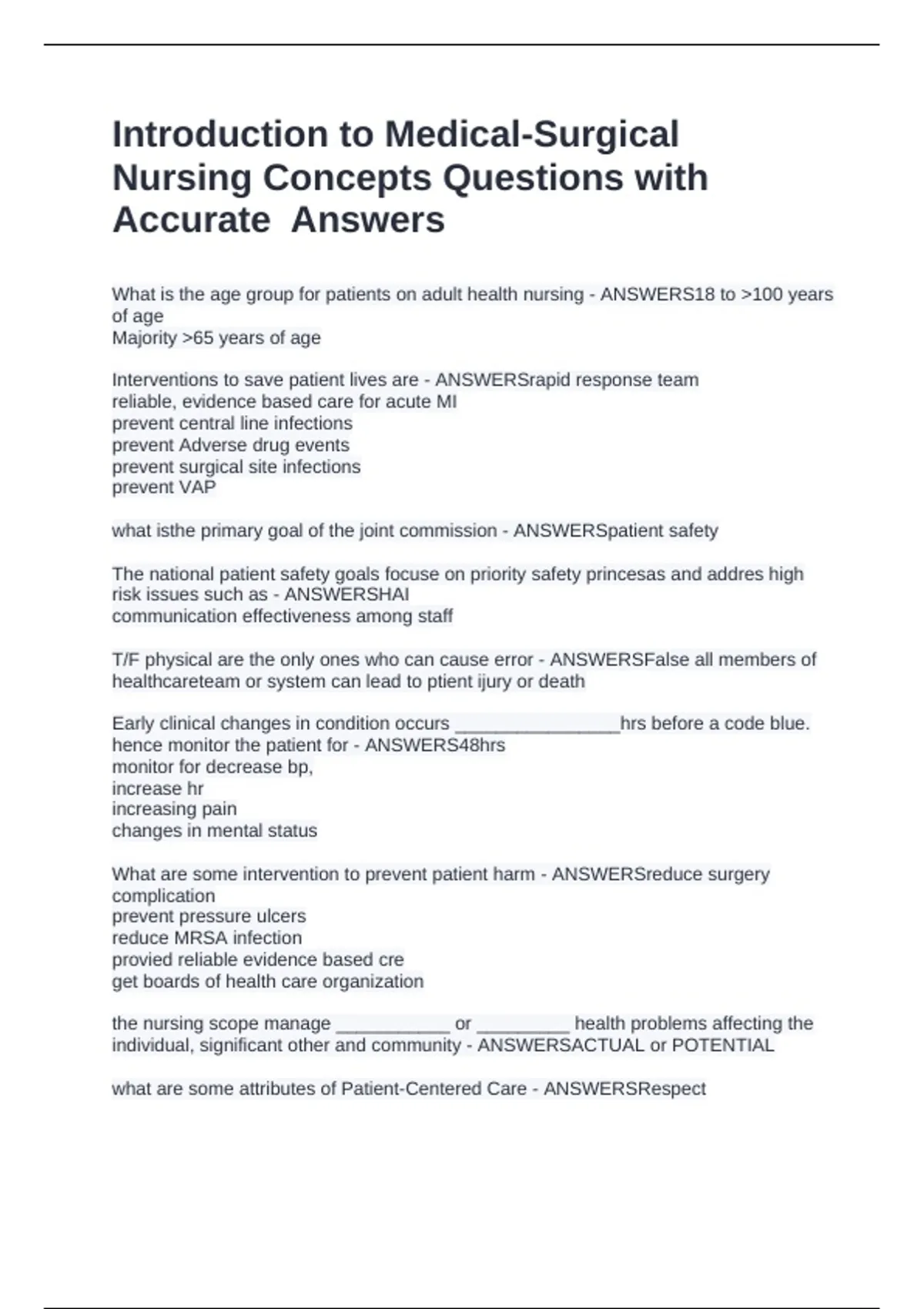Nursing Concepts Questions with