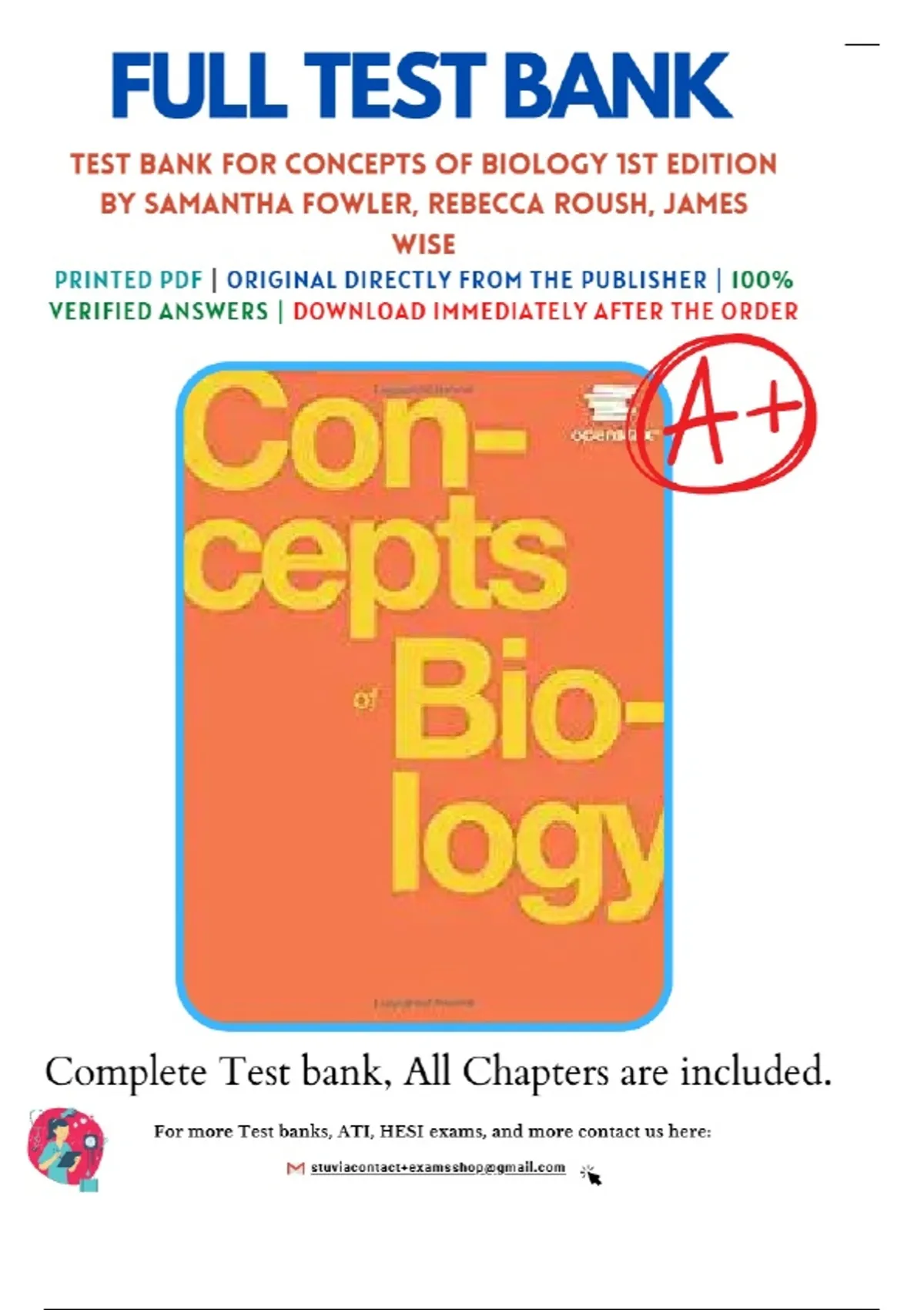 Test Bank For Concepts of Biology 1st Edition by Samantha Fowler, Rebecca Roush, James Wise 9781938168116 Chapter 1-21 Complete Guide-All Chapters