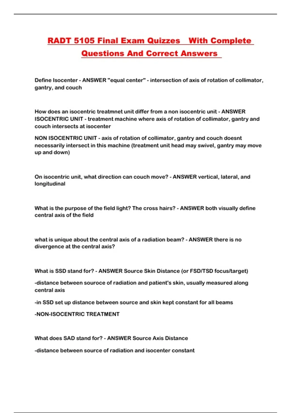 RADT 5105 Final Exam Quizzes With Complete Questions And Correct Answers ...