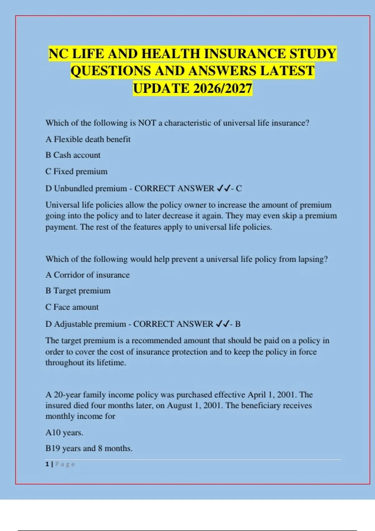 D Adjustable premium - CORRECT ANSWER ✔✔- B