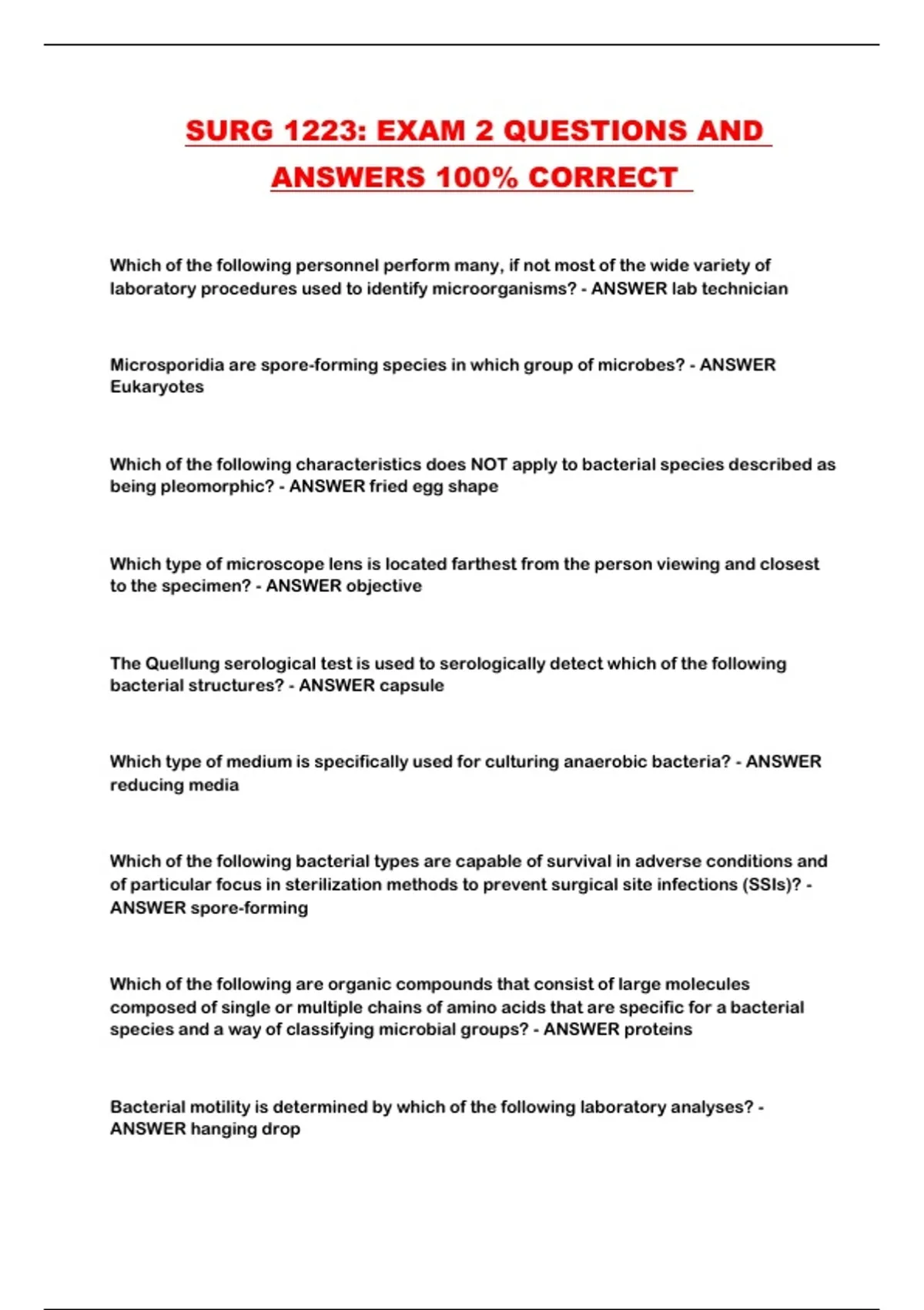 SURG 1223: EXAM 2 QUESTIONS AND
