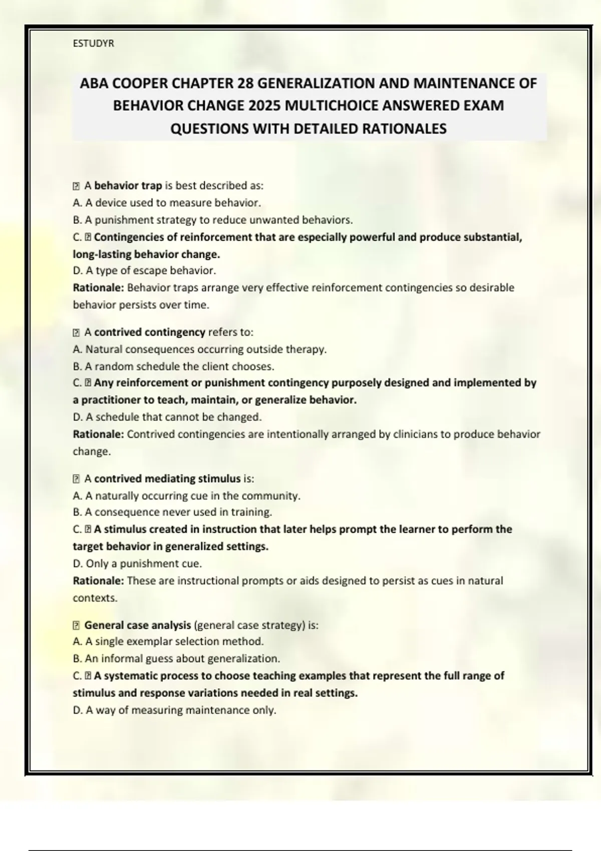BEHAVIOR CHANGE 2025 MULTICHOICE ANSWERED EXAM
