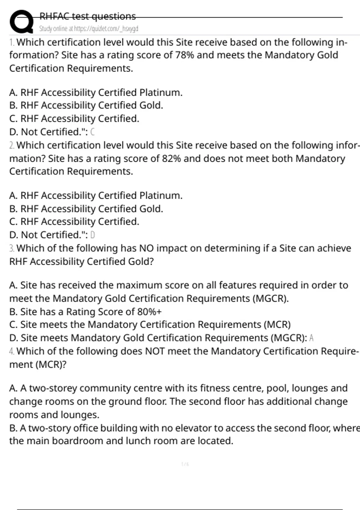 C. An RHF Accessibility Certified Site must have a visual fire alarms. D. An RHF