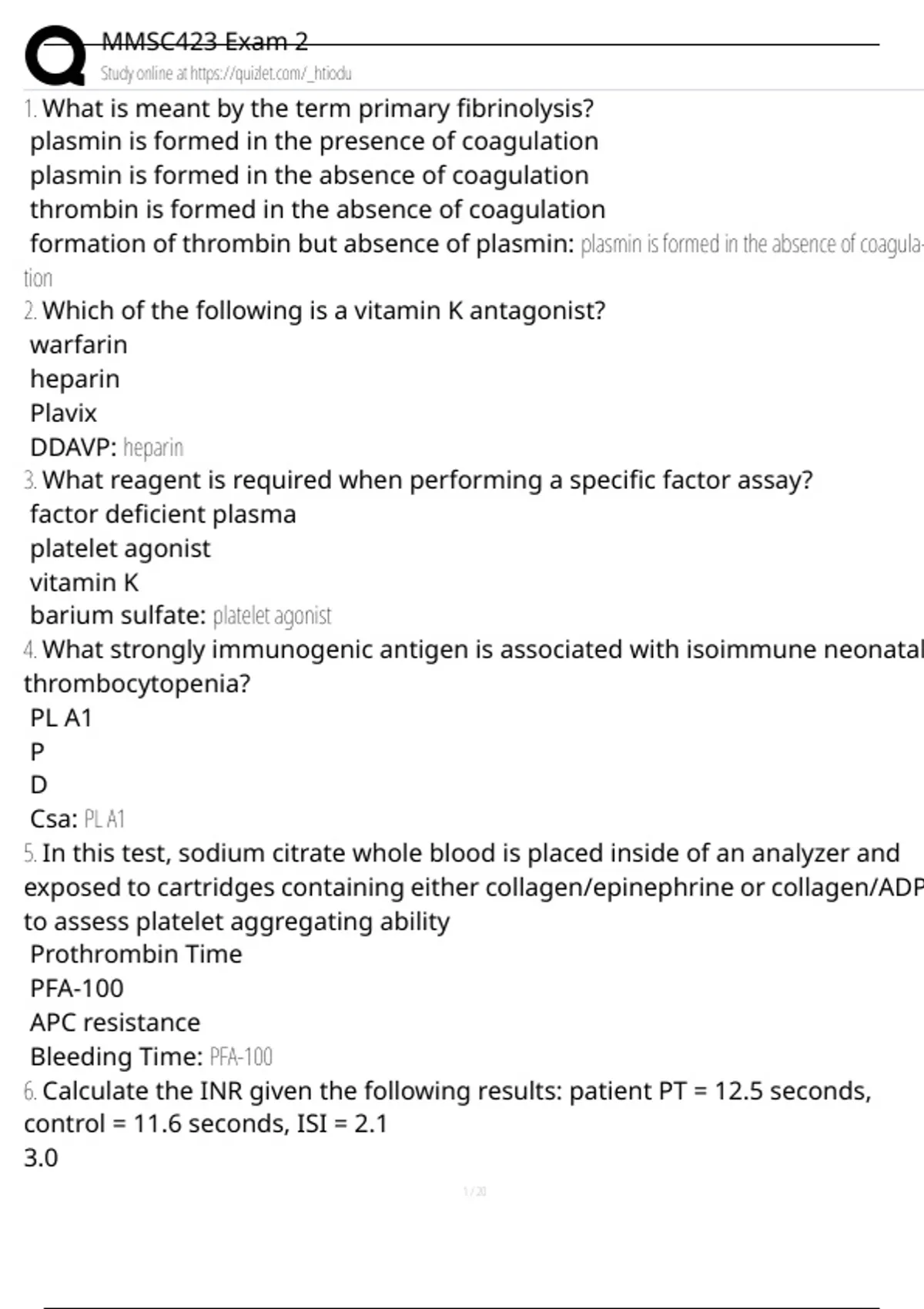6. Calculate the INR given the following results: patient PT = 12.5 seconds,