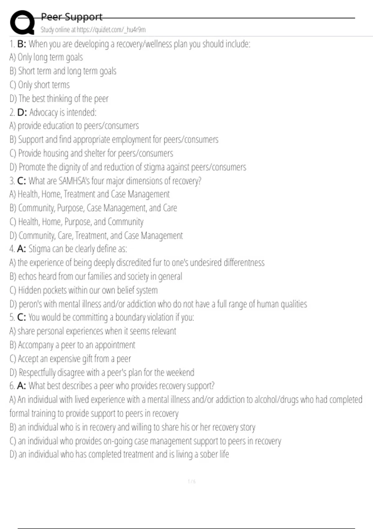 Peer Support Exam Questions and Answers 100% Pass |Verified and Updated |Graded A+