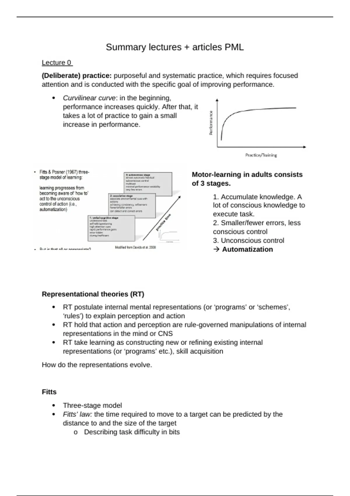 Summary lectures + articles PML