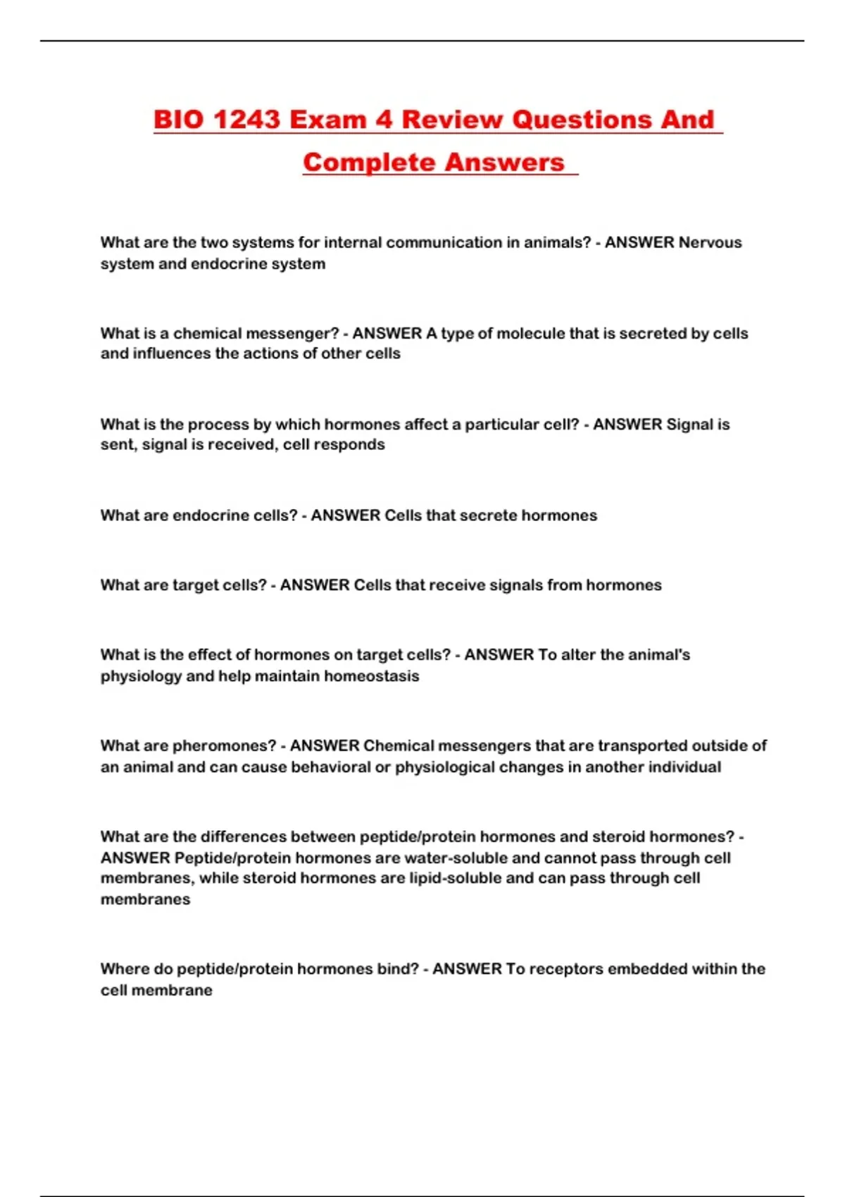 BIO 1243 Exam 4 Review Questions And