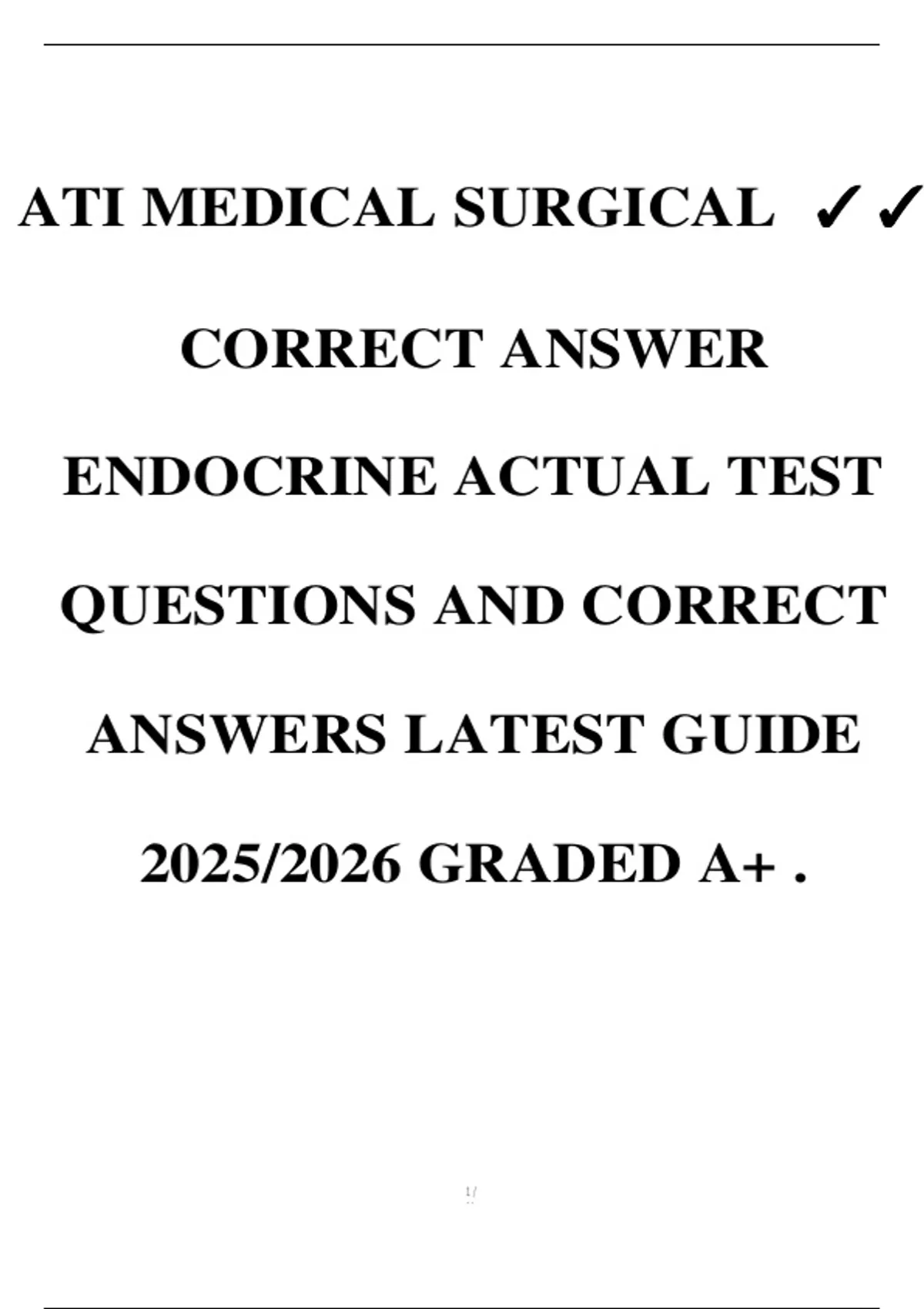 ATI MEDICAL SURGICAL CORRECT ANSWER ENDOCRINE ACTUAL TEST QUESTIONS AND CORRECT ANSWERS LATEST GUIDE 2025/2026 GRADED A+ .