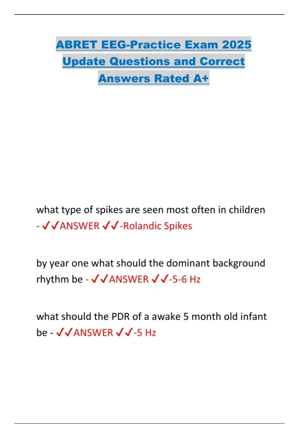 ABRET EEG-Practice Exam 2025 Update Questions and Correct Answers Rated A+