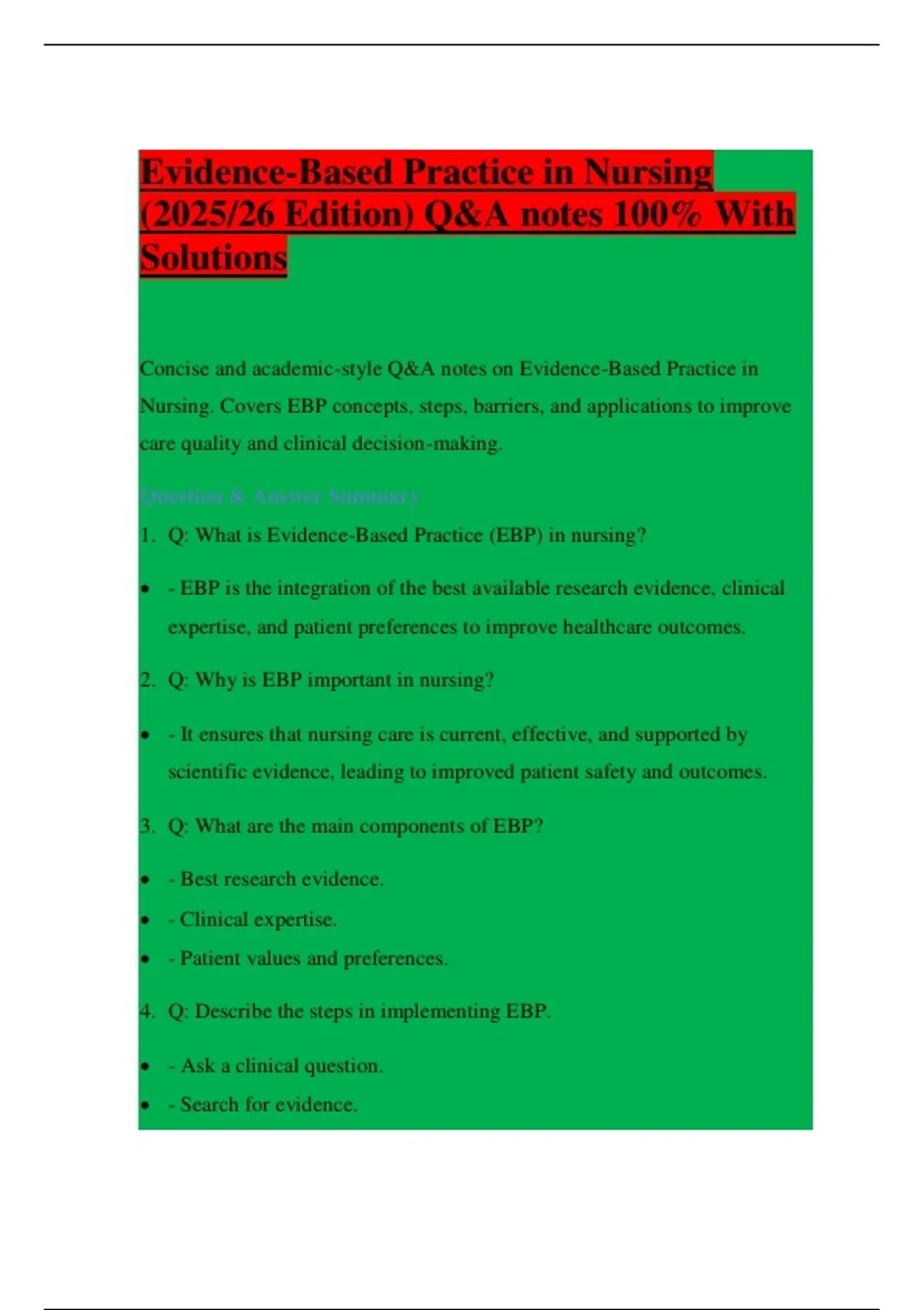 Evidence-Based Practice in Nursing (2025/26 Edition) Q&A notes 100% With Solutions