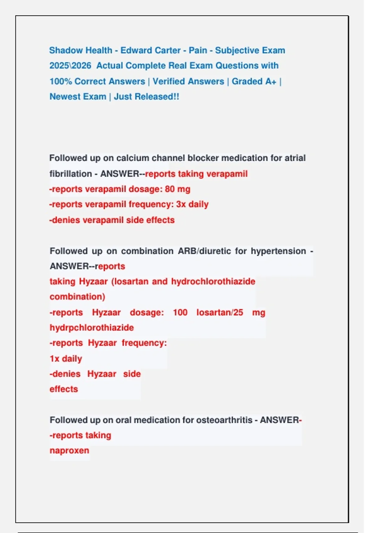 Followed up on oral medication for osteoarthritis - ANSWER-