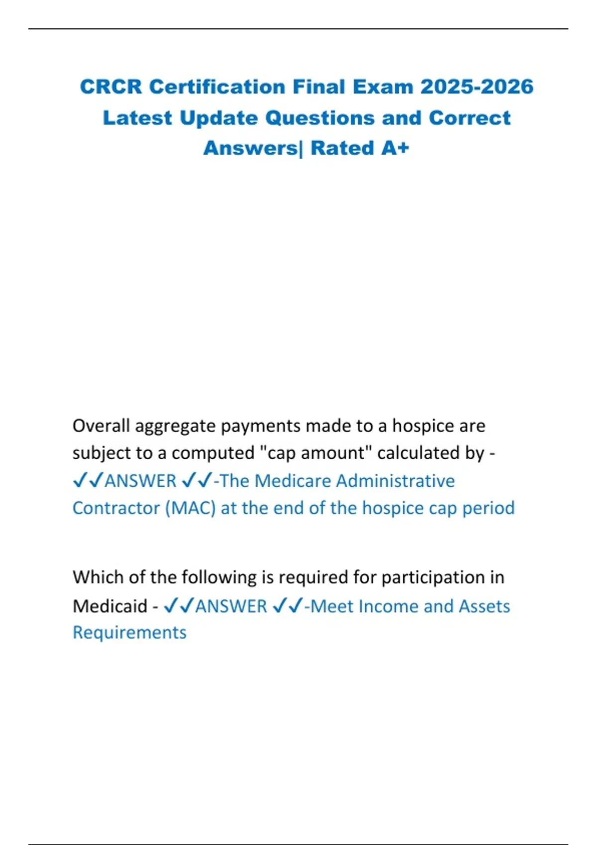 CRCR Certification Final Exam Latest Update Questions and Correct Answers| Rated A+