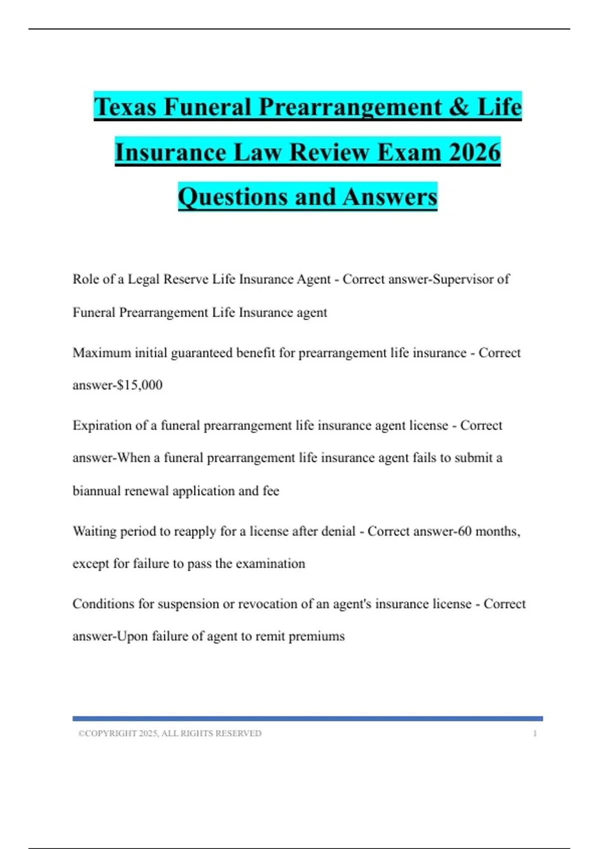 Insurance Law Review Exam 2026