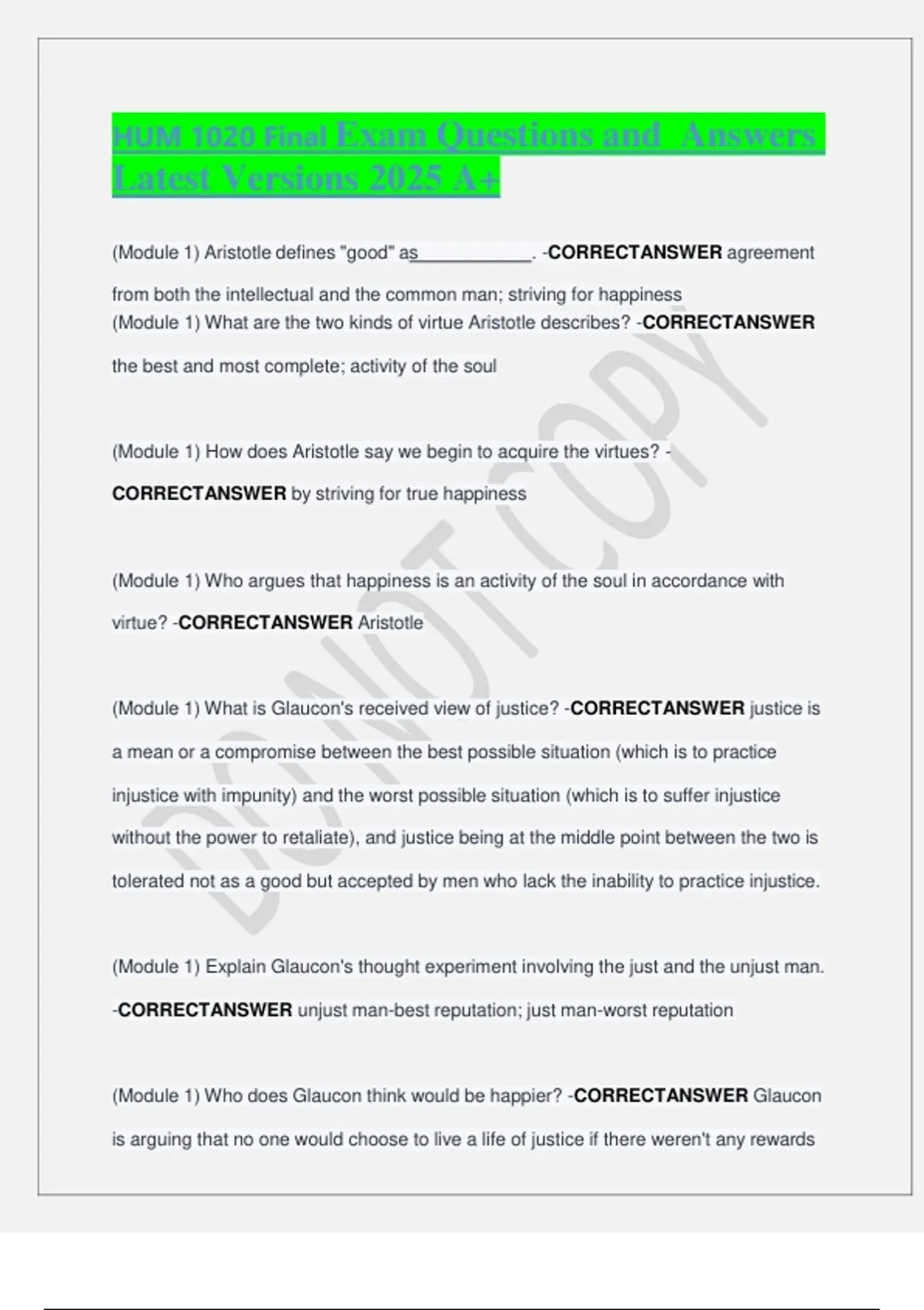 HUM 1020 Final Exam Questions and Answers