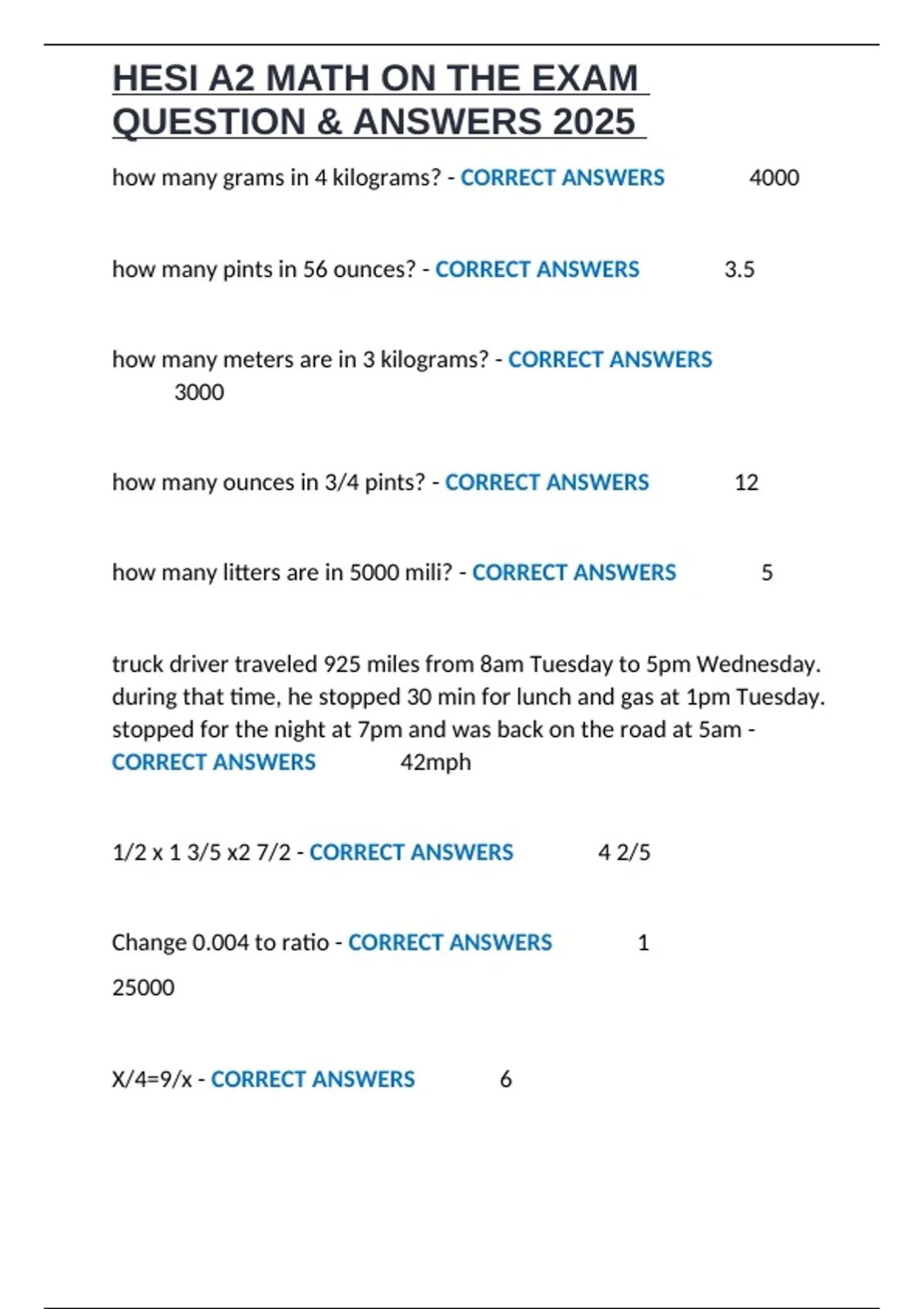 HESI A2 MATH ON THE EXAM QUESTION & ANSWERS