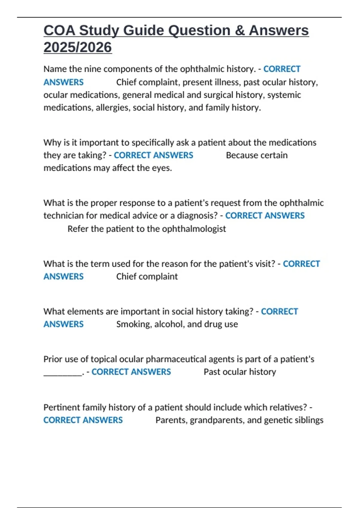 ANSWERS ✔✔Chief complaint, present illness, past ocular history,