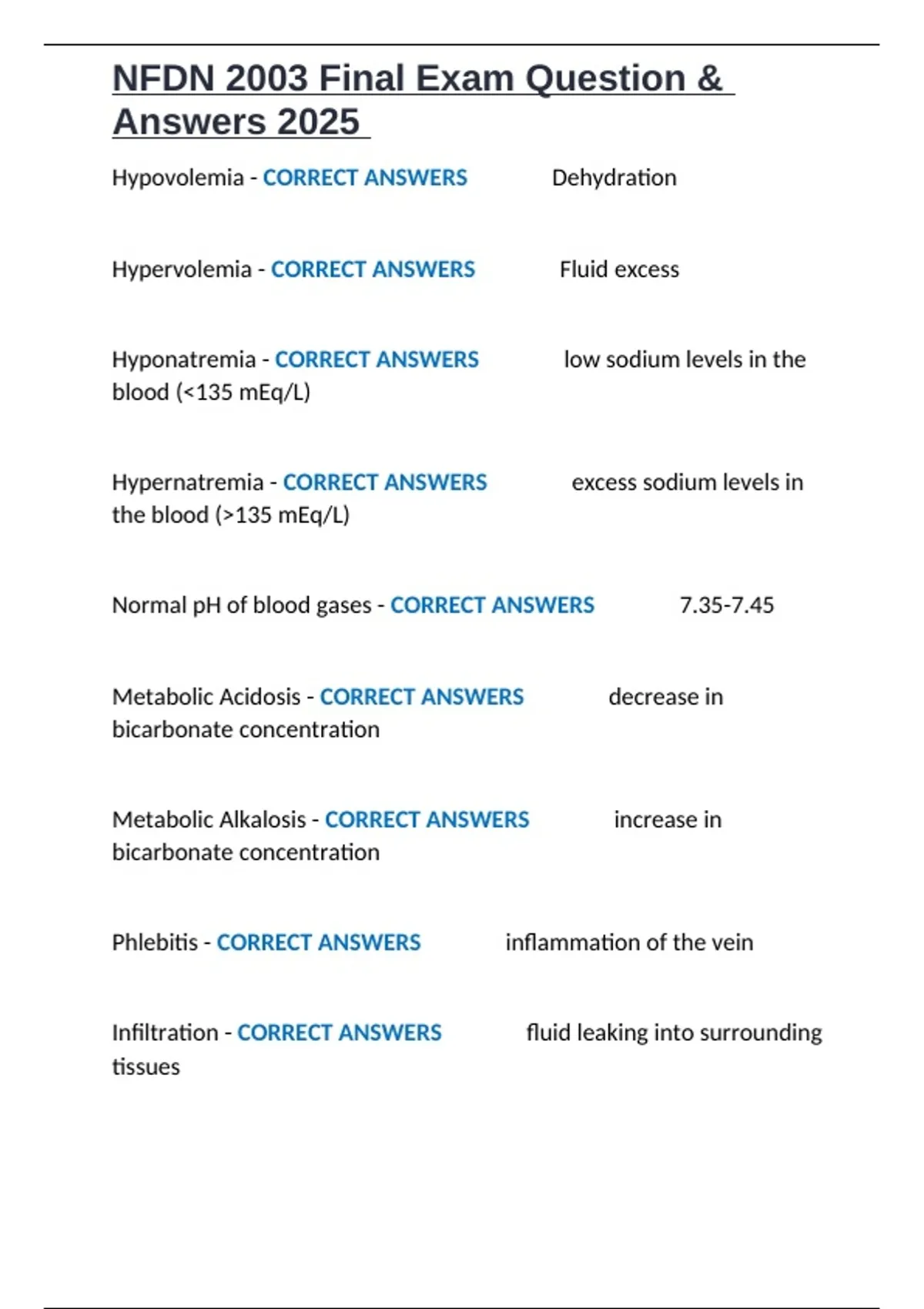 NFDN 2003 Final Exam Question & Answers