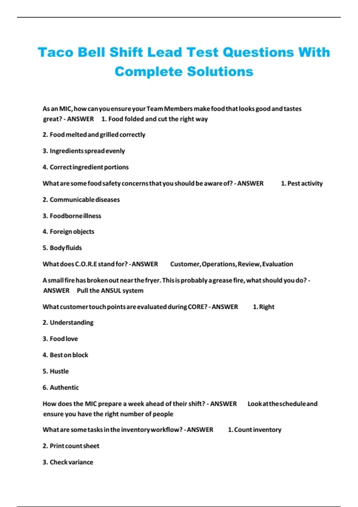 Taco Bell Shift Lead Test Questions With