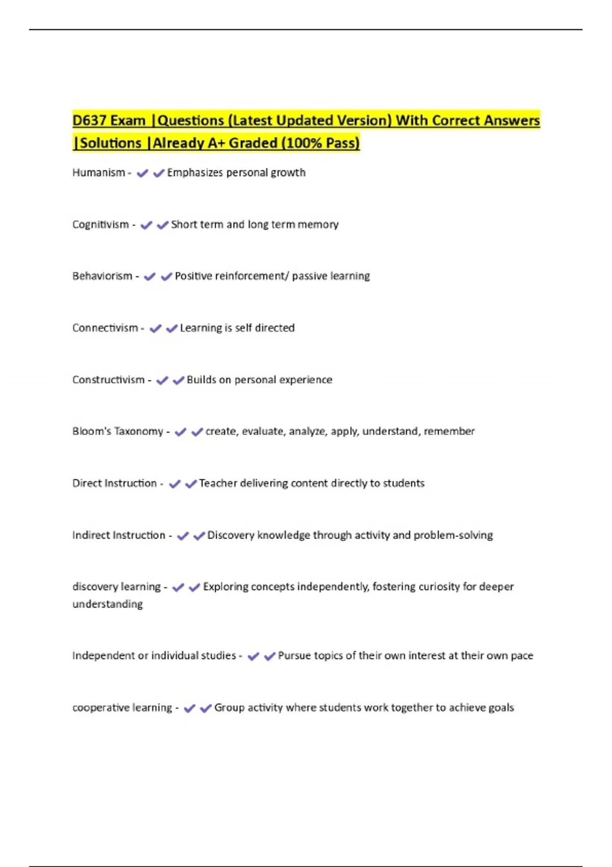 D637 Exam |Questions (Latest Updated Version) With Correct Answers |Solutions |Already A+ Graded (100% Pass)