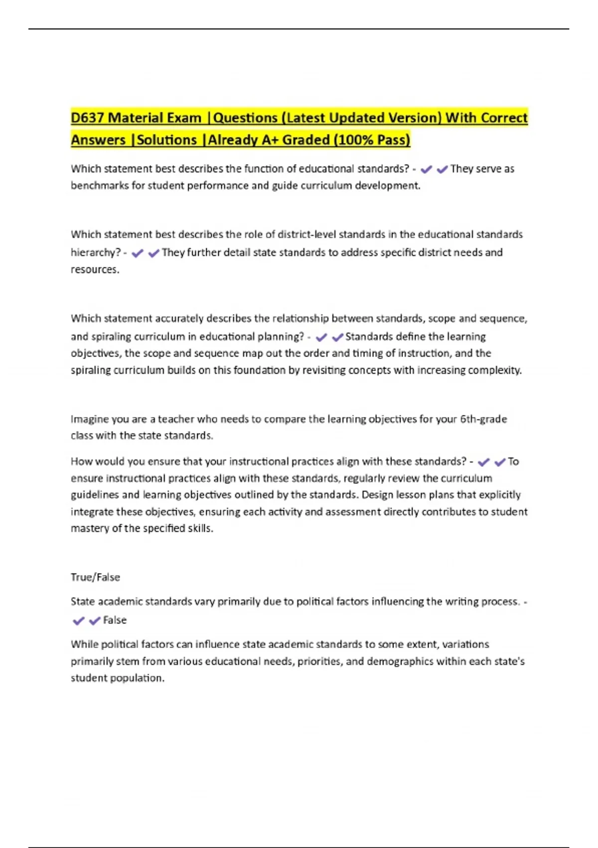 D637 Exams Bundles |Questions (Latest Updated Version) With Correct Answers |Solutions |Already A+ Graded (100% Pass)
