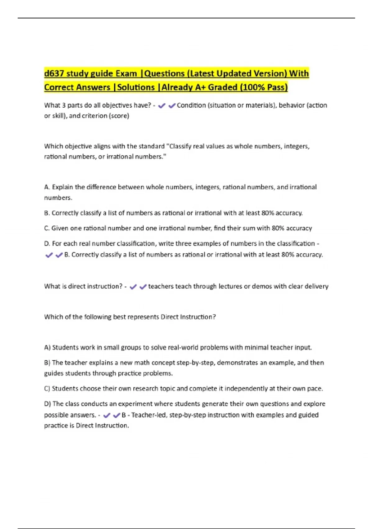 d637 study guide Exam |Questions (Latest Updated Version) With Correct Answers |Solutions |Already A+ Graded (100% Pass)