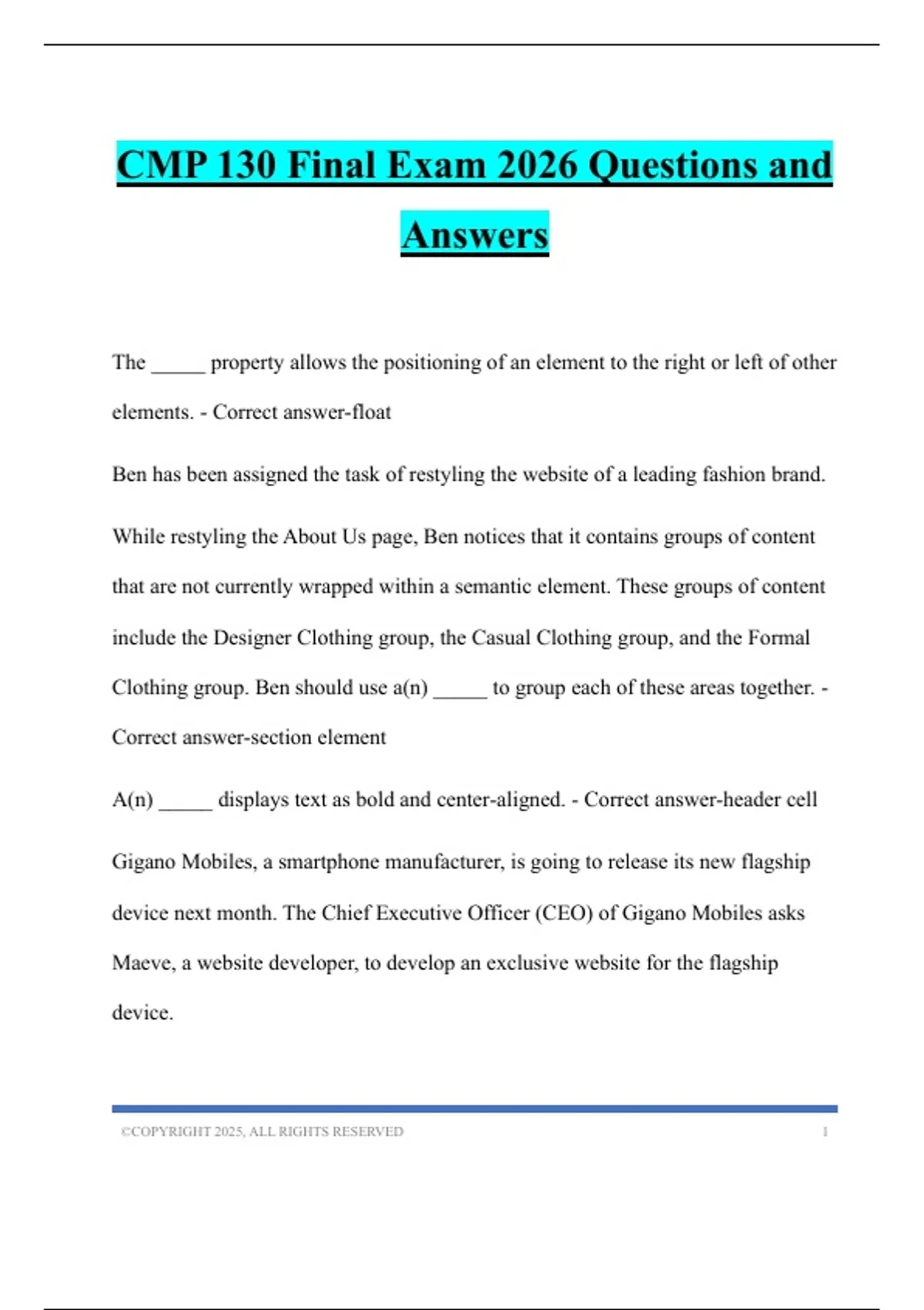 CMP 130 Final Exam 2026 Questions and