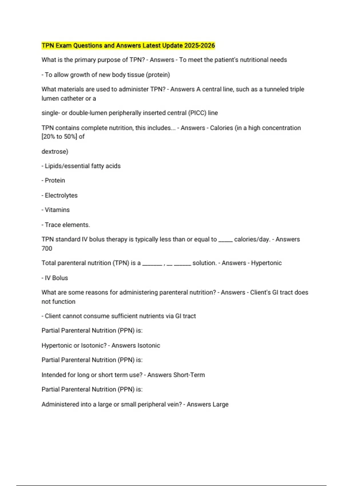Total parenteral nutrition (TPN) is a _______ , __ ______ solution. - Answers - Hypertonic